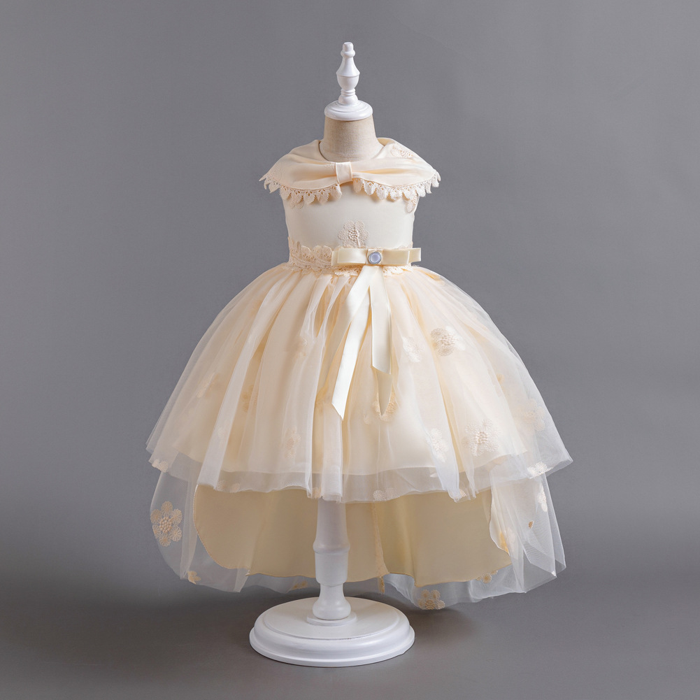Cross border girls' high-end princess dress, small trailing model, runway show, flower girl, small host, piano performance dress