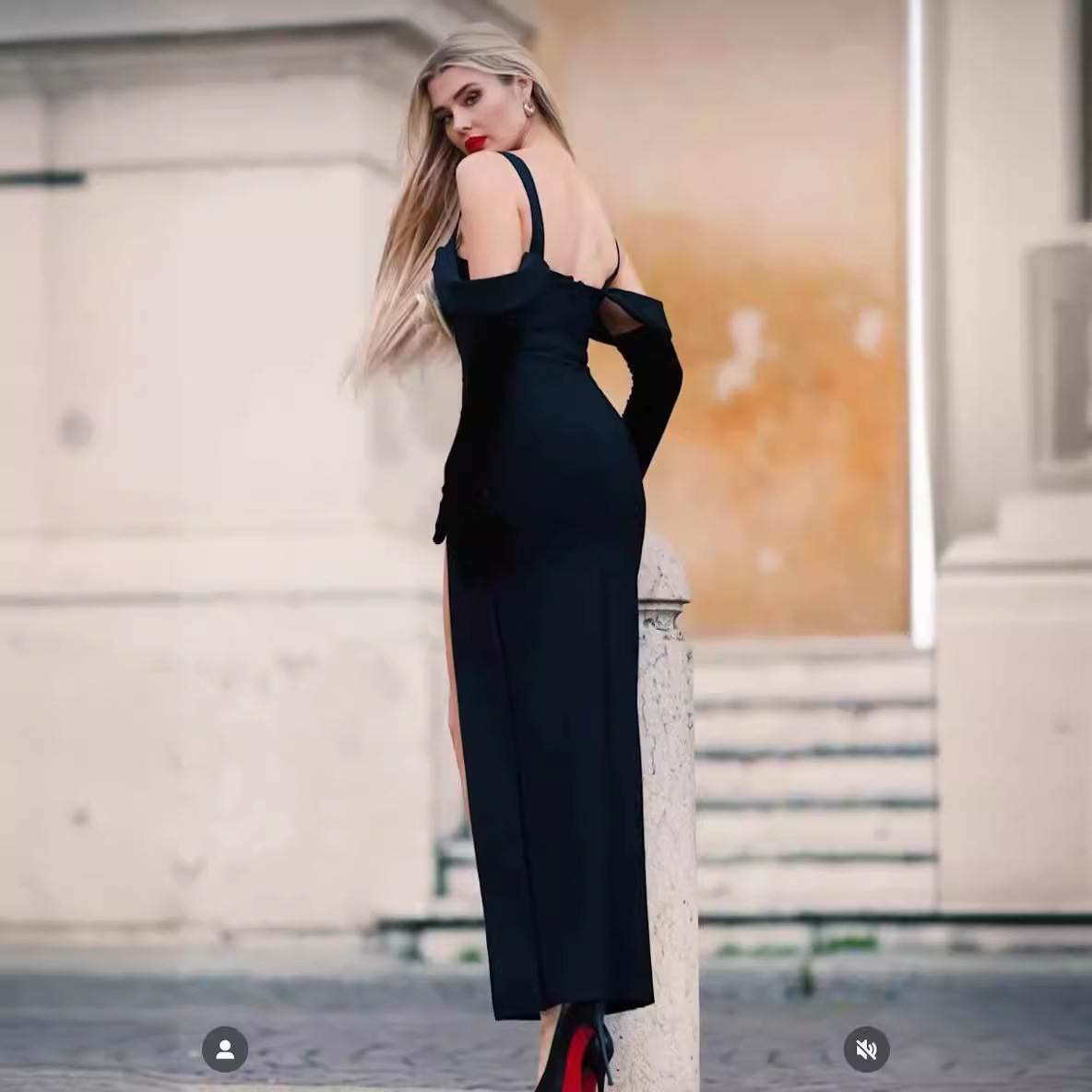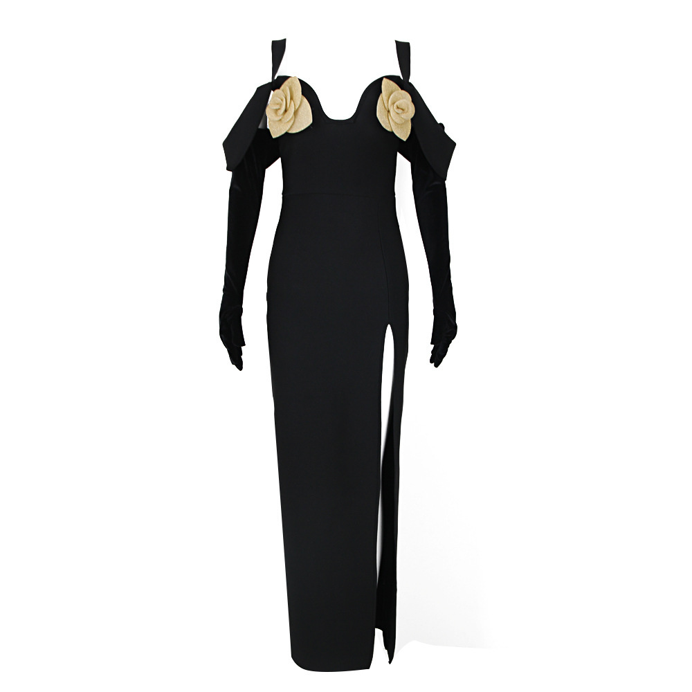 New bandage long dress, three-dimensional flower, European and American temperament, suspender dress, elegant black dress, gloves, stand independently outside