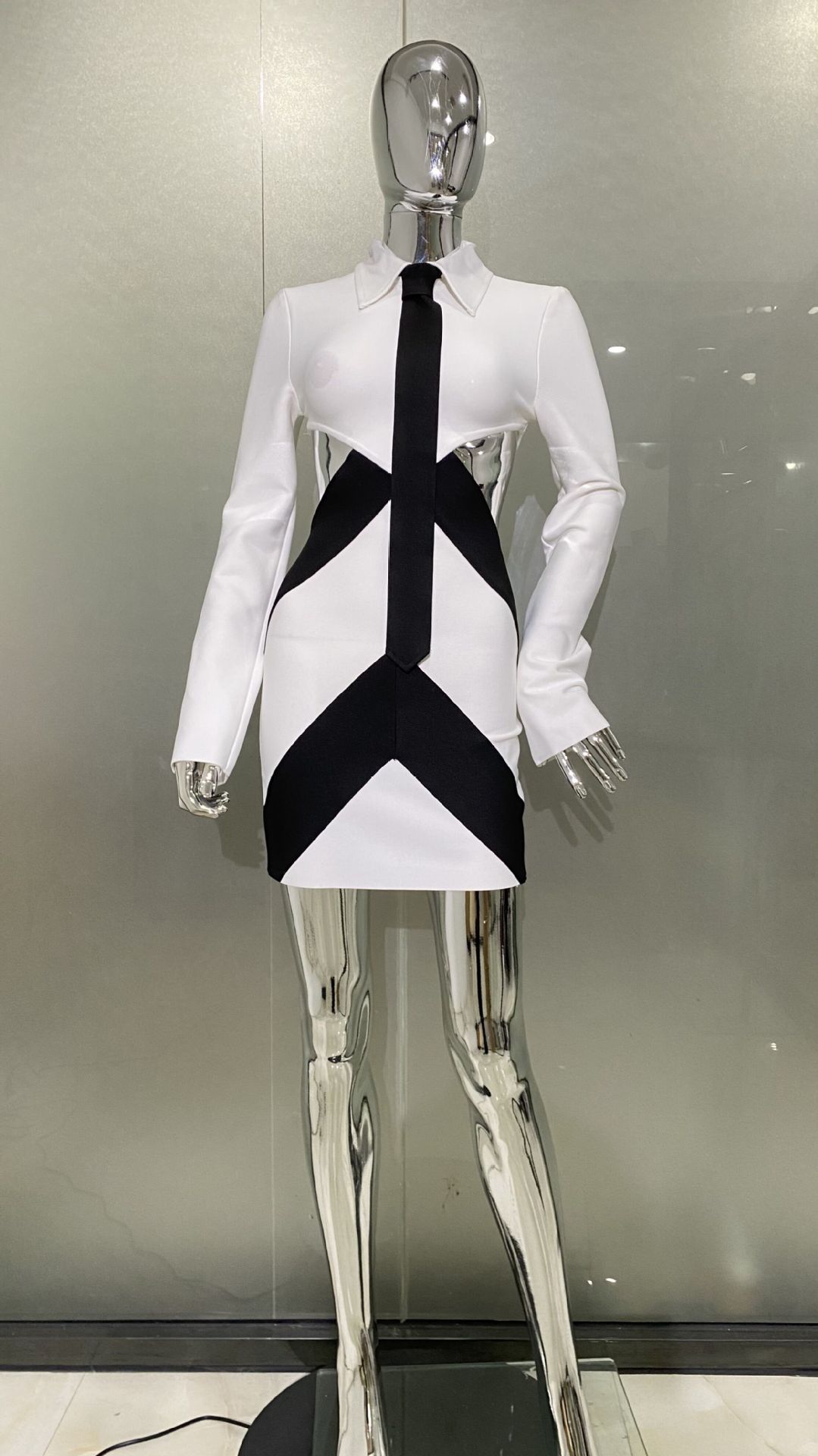European and American hot style handsome tie sexy hollow black and white contrasting ultra short dress fashionable and hot dress