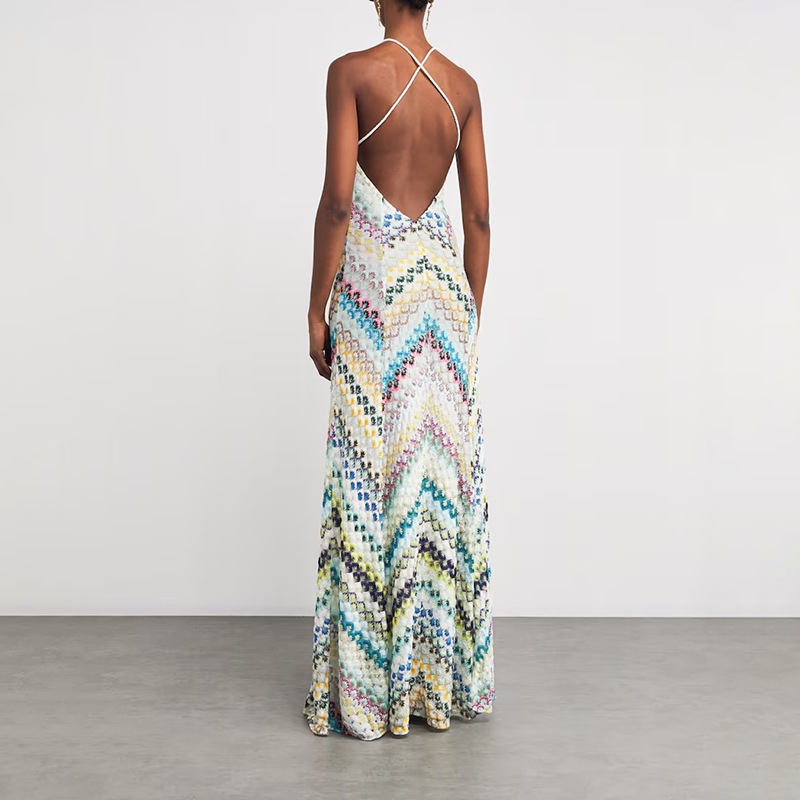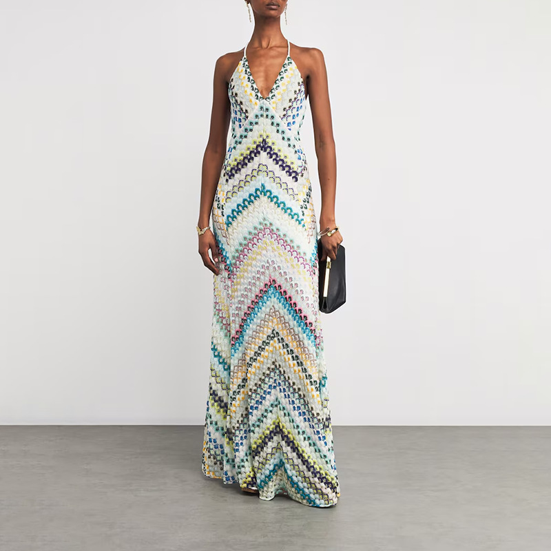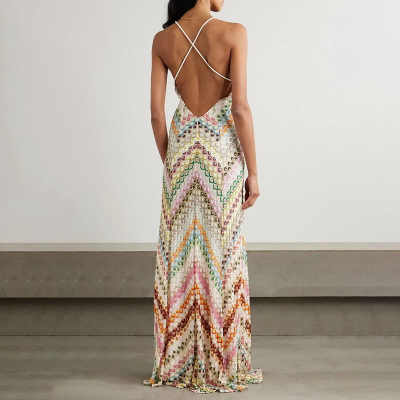 Bohemian style bag hip skirt 2025 new V-neck suspender sleeveless waist cinching slimming print long dress for women