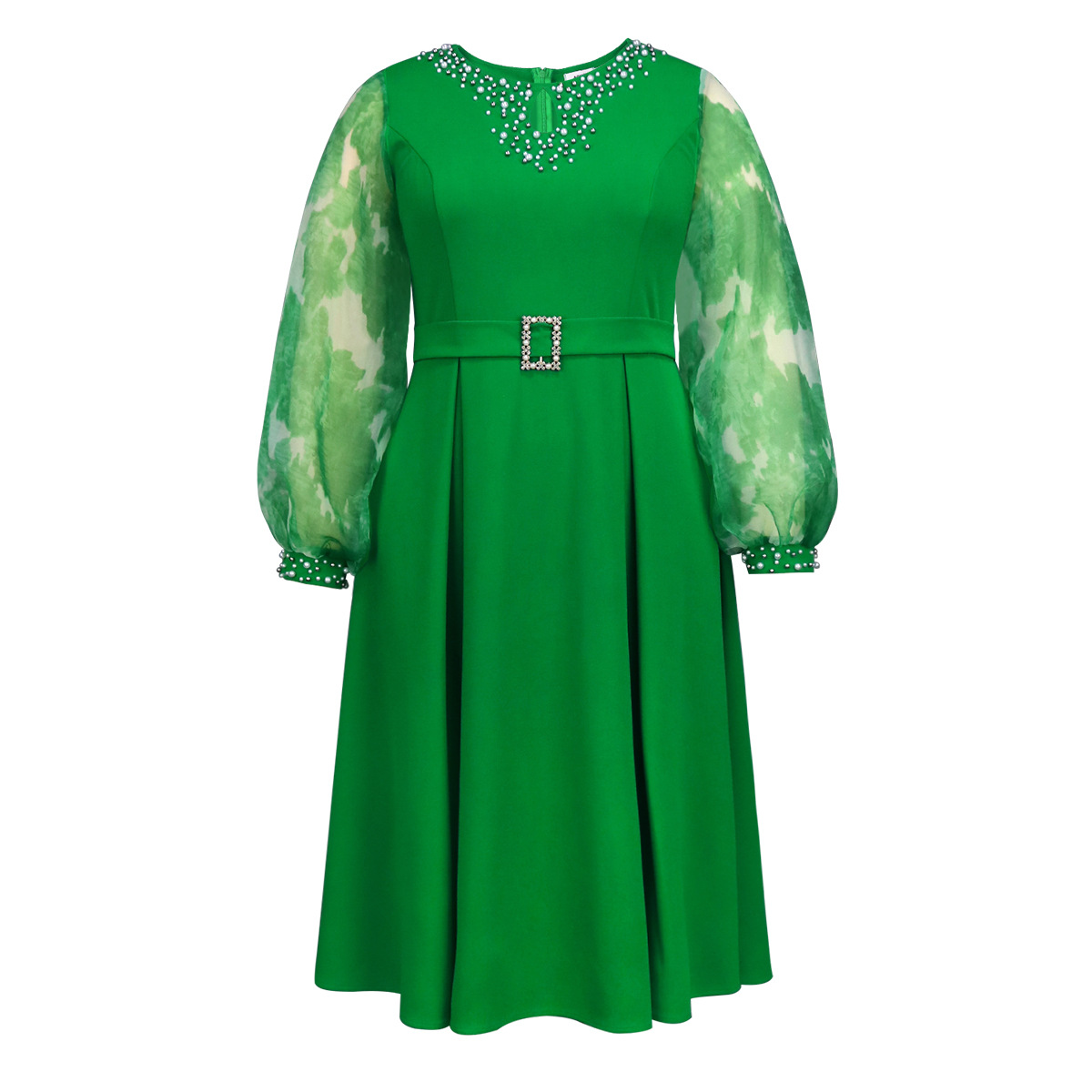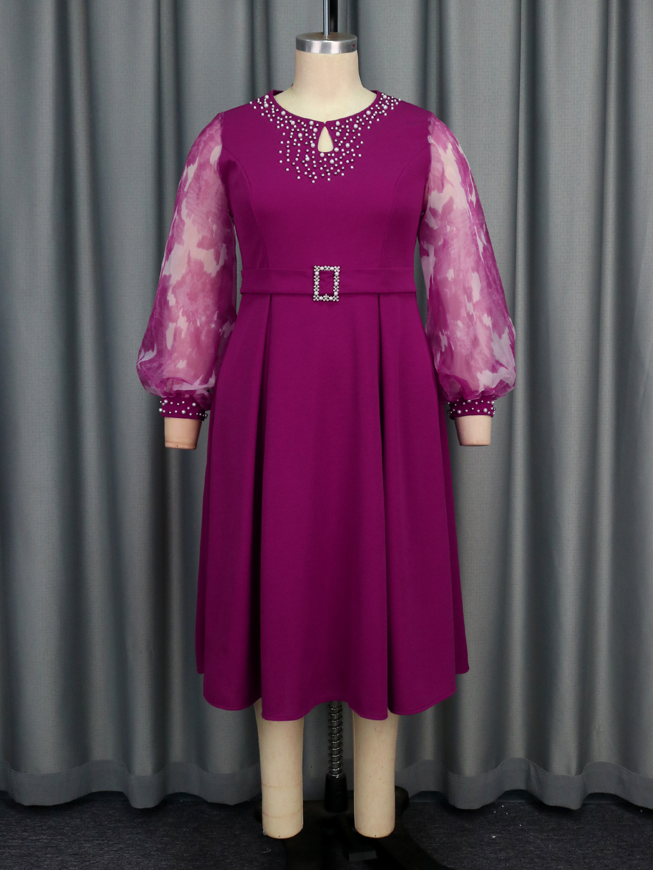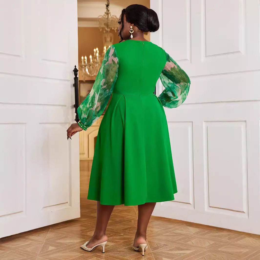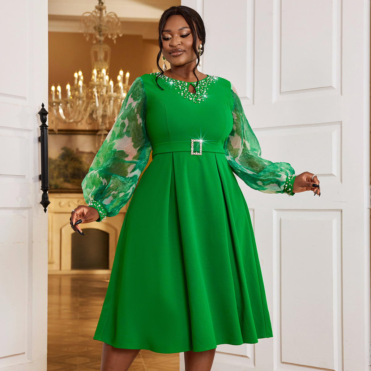 AM040710 Autumn New Lantern Long Sleeve Elegant Dress Party Nail Bead High Waist A-line Skirt Dresses