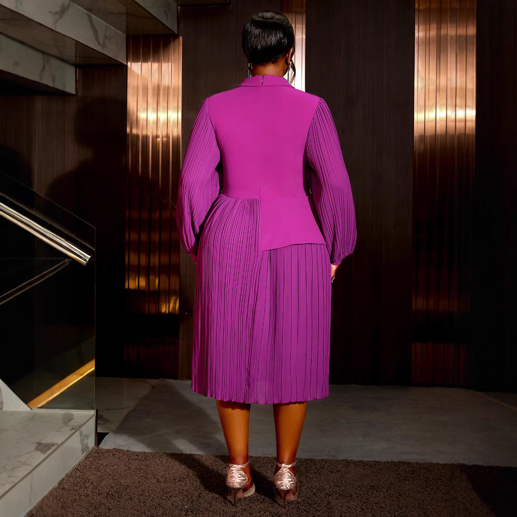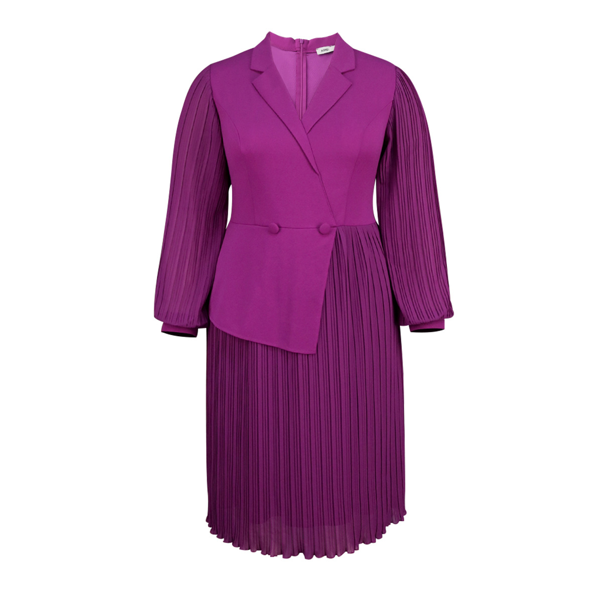 AM040911 fashion suit collar lantern long sleeved dress Christmas personality asymmetrical pleated skirt dress