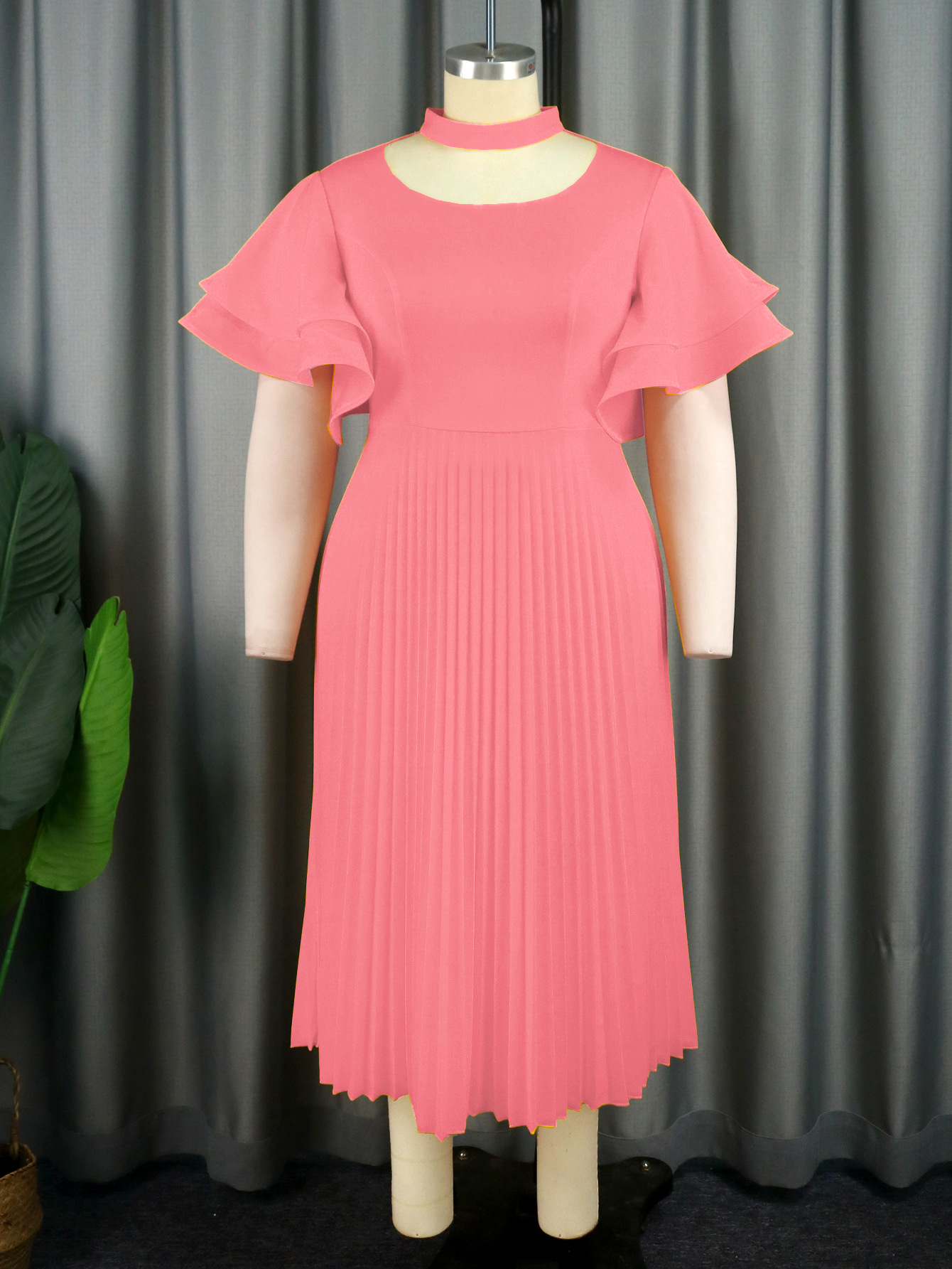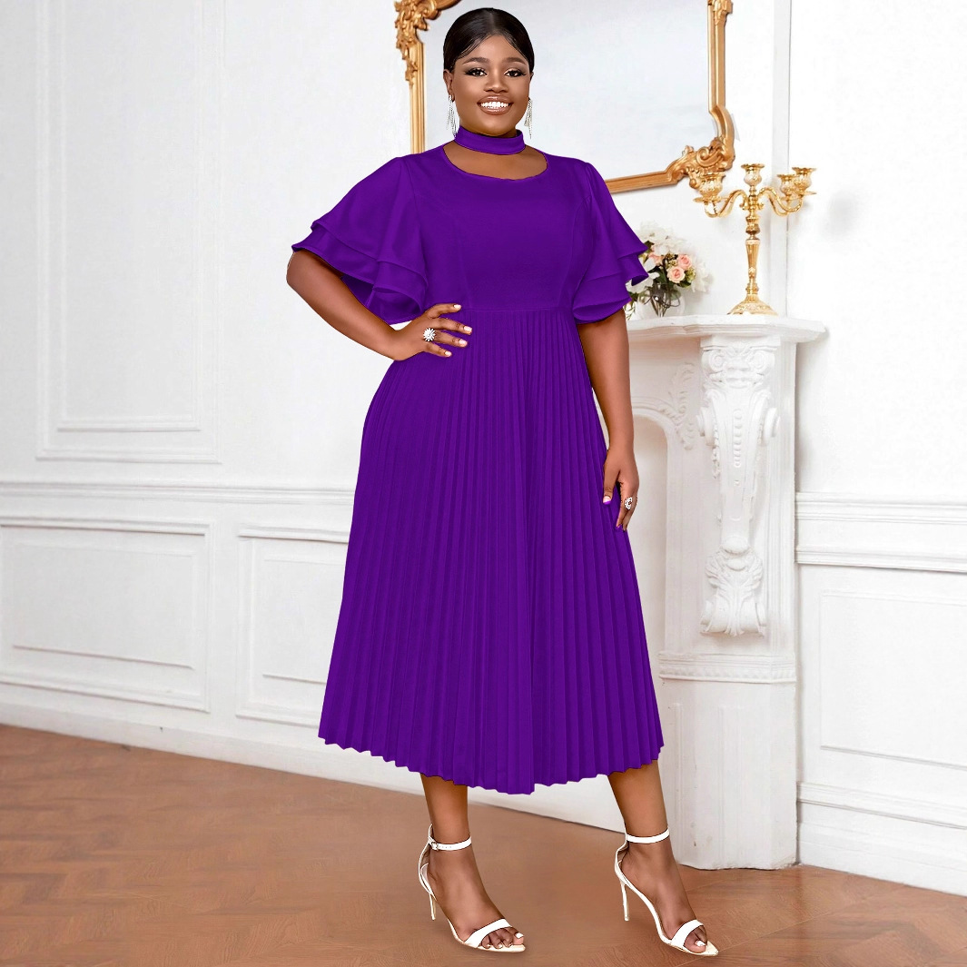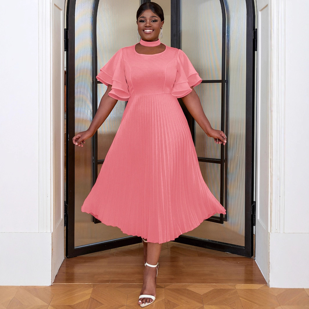 AM030532 European and American personalized hollow collar pleated skirt elegant wind lotus leaf edge flared sleeve dress dresses