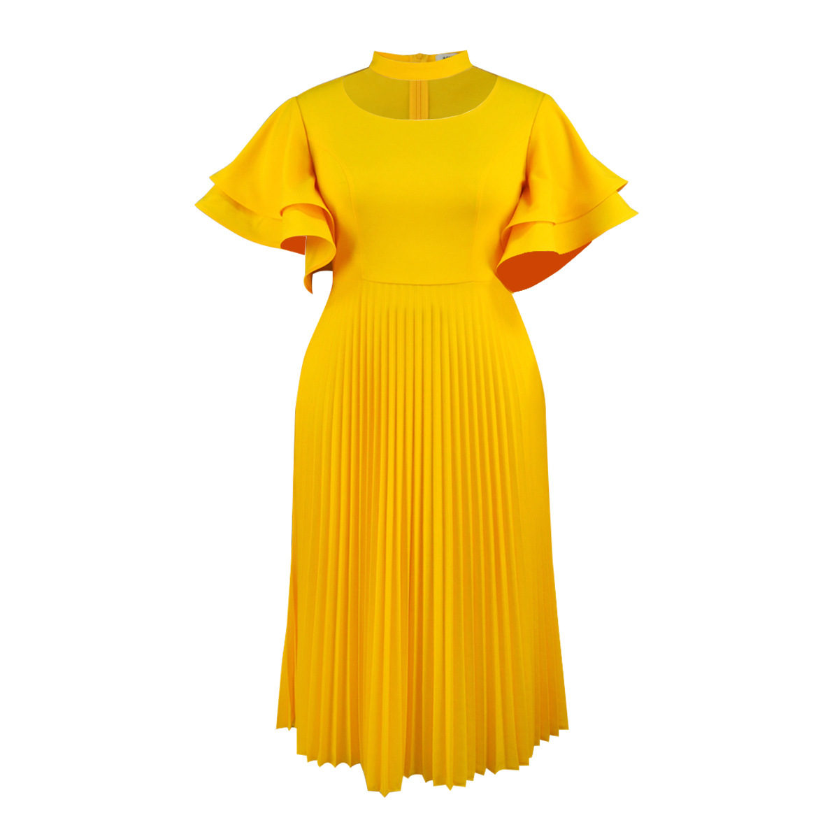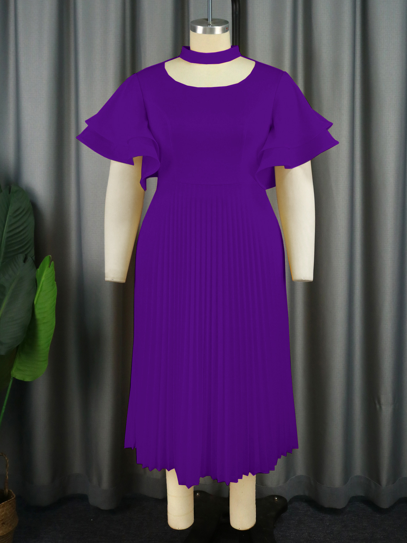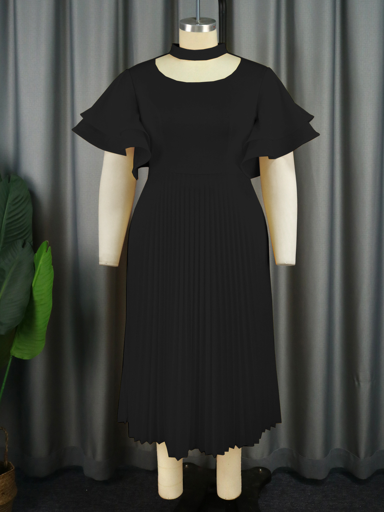 AM030532 European and American personalized hollow collar pleated skirt elegant wind lotus leaf edge flared sleeve dress dresses