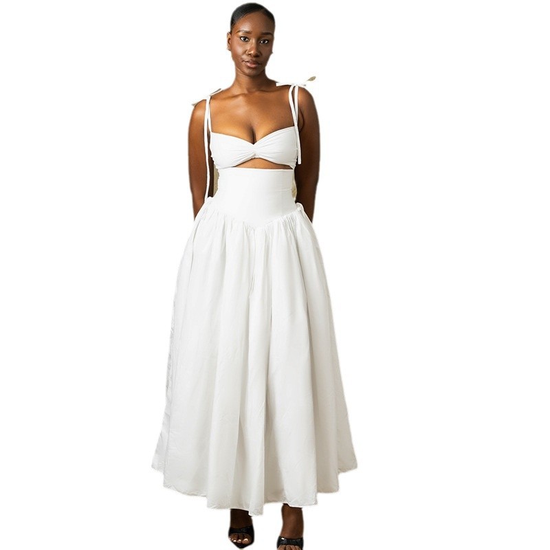 European and American style ins foreign trade women's fashion solid color dress with suspender, off shoulder, sleeveless skirt, dress