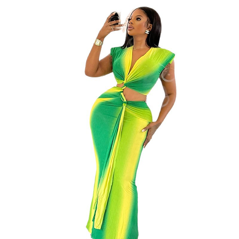 European and American style Instagram cross-border niche splicing women's pleated hollow bag skirt slim commuting V-neck strap dress
