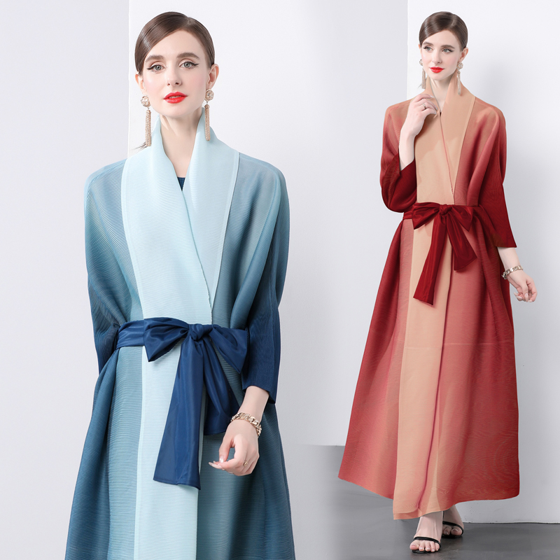 Miyake Fold Original Quality Early Autumn Fold Loose Large Gradient Dyeing Printed Coat