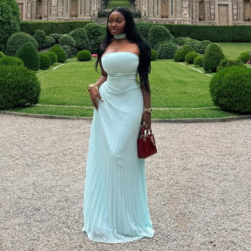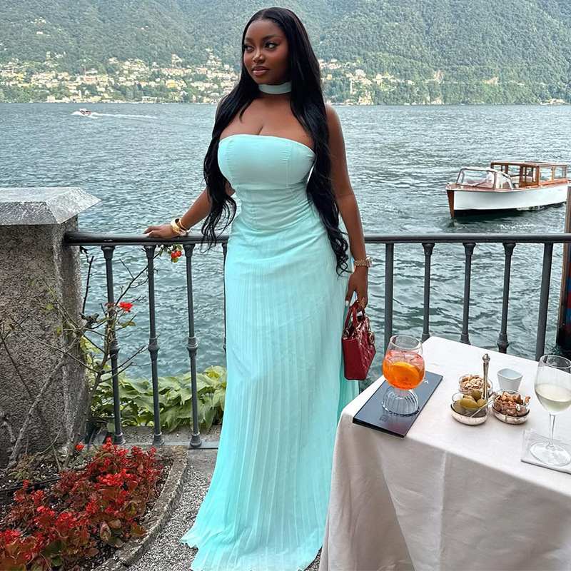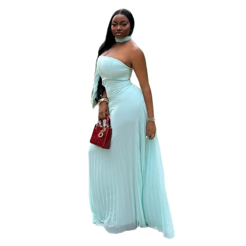 European and American cross-border women's clothing 2025 summer new style temperament hanging neck strapless green dress banquet long dress dress
