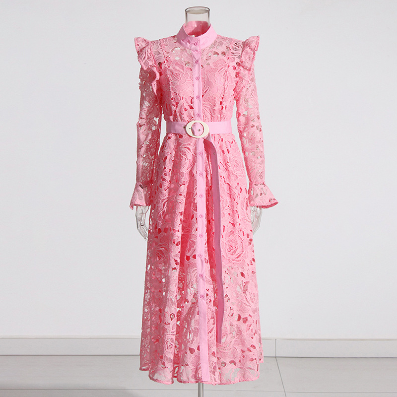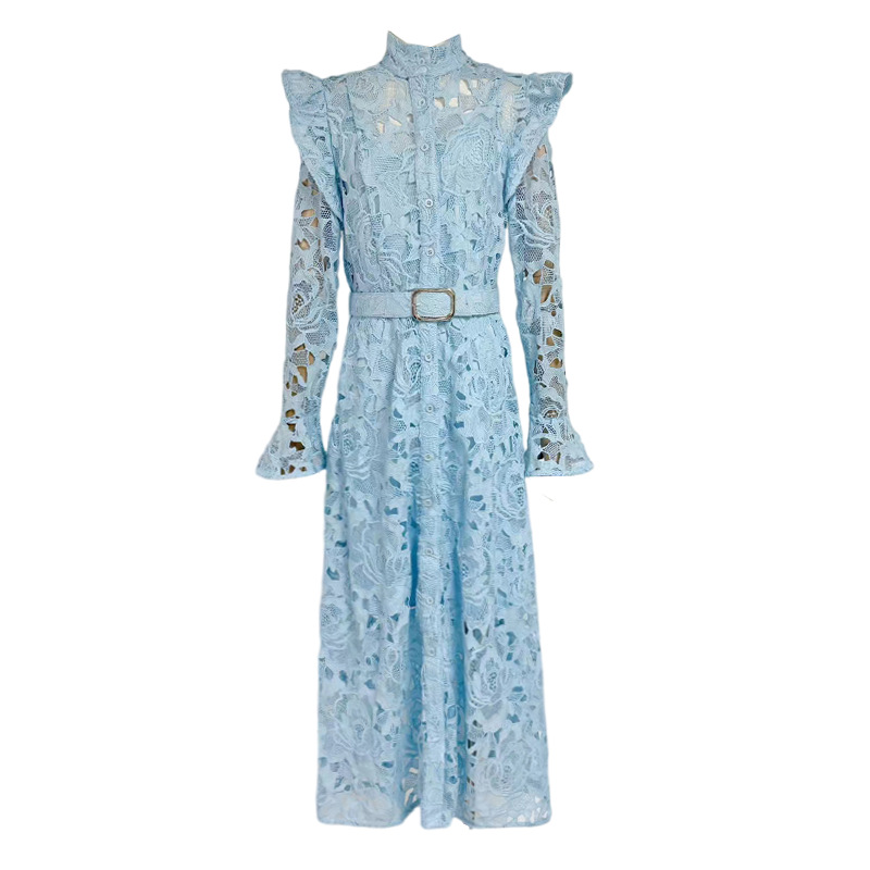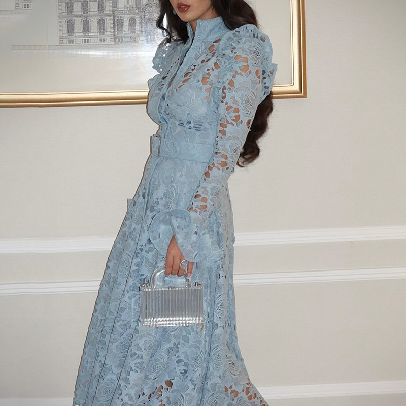 Australian fashion brand dress for women's autumn luxury 2025 new fashion high neck long sleeved hollow embroidery vacation long skirt
