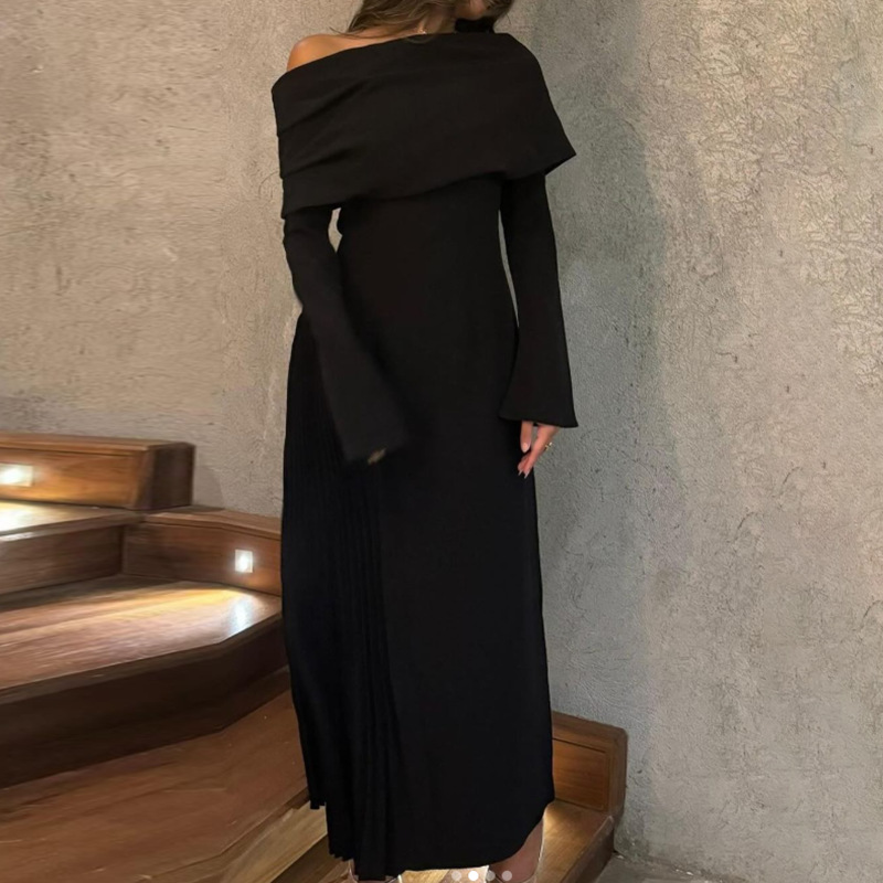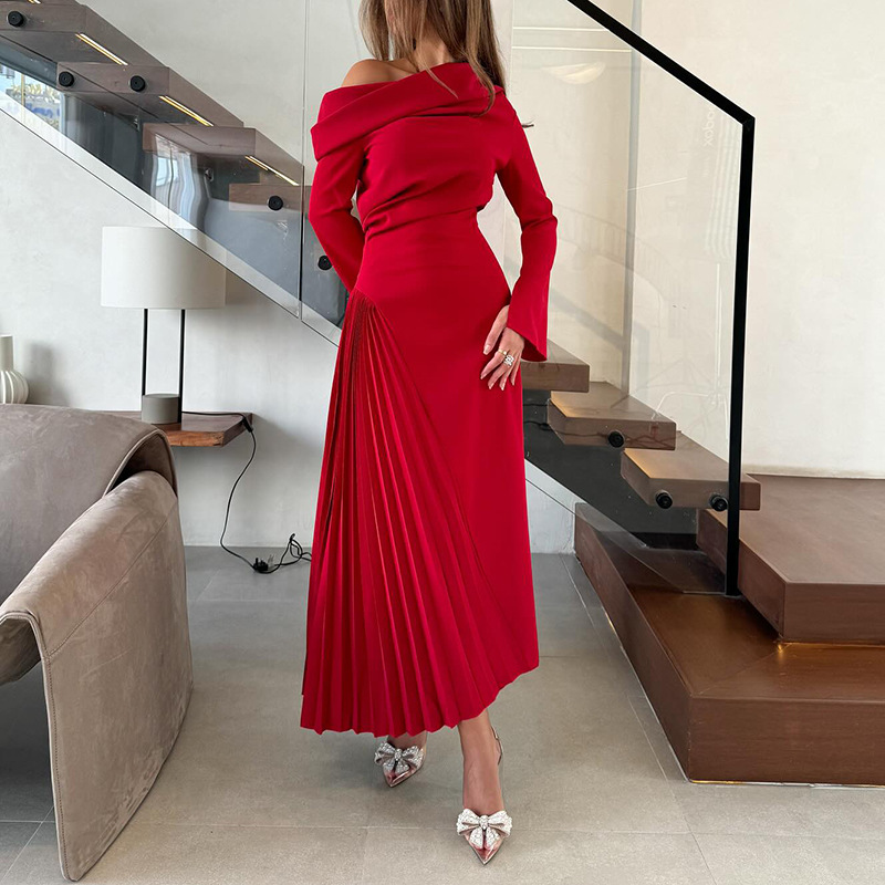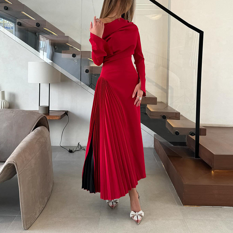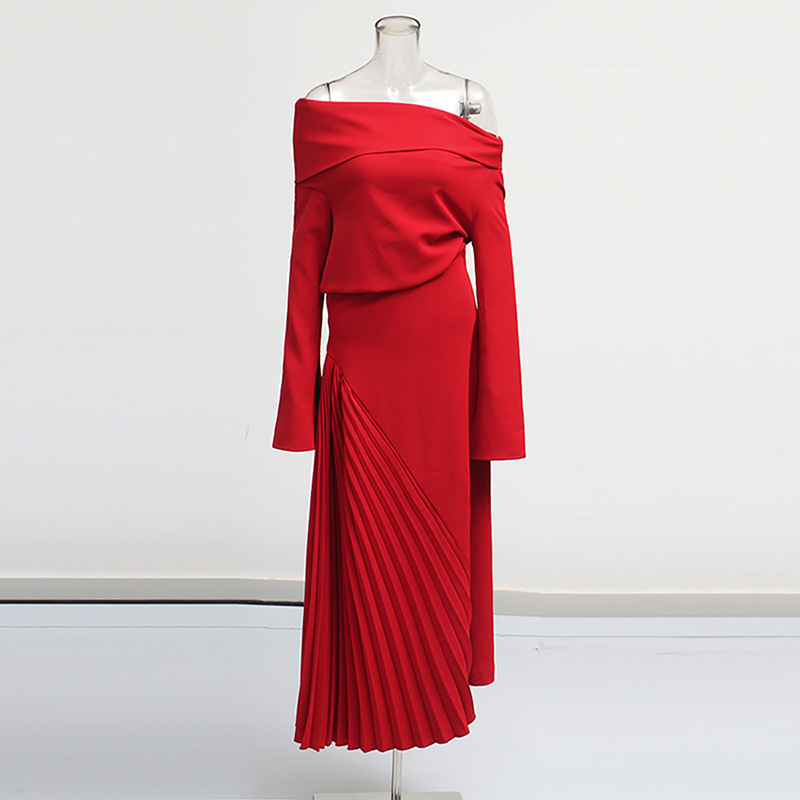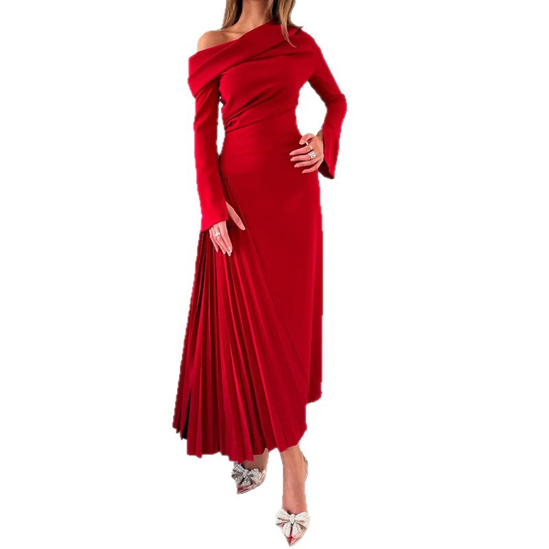 European and American cross-border socialite style dress 2025 new pleated slit high-end asymmetric design dress for women
