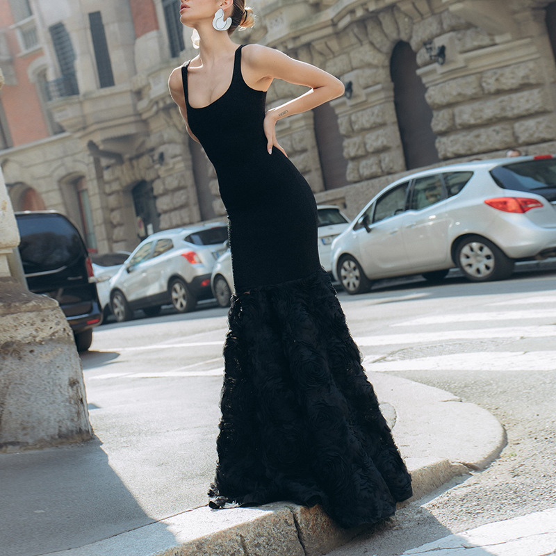European and American sexy style dress for women 2025 new fashionable solid color U-neck low cut suspender high waist slim fit hip hugging skirt