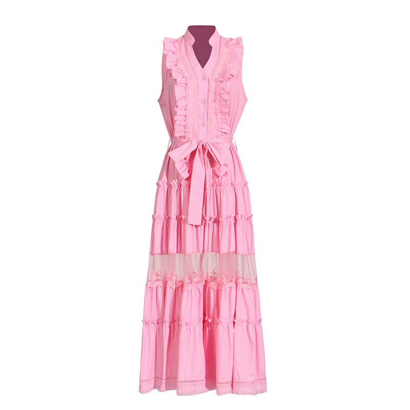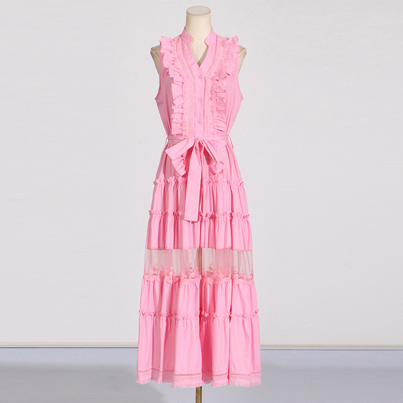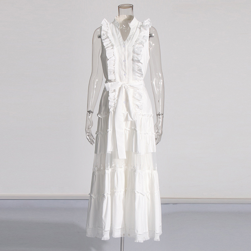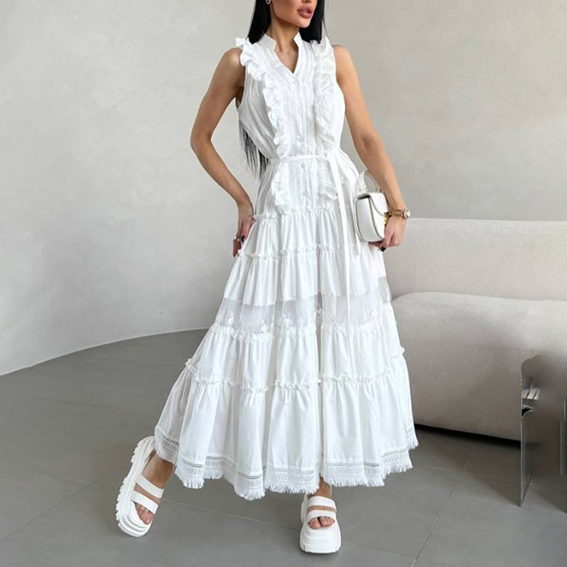 European and American cross-border sleeveless ruffle edge dress 2025 new style temperament, waist cinching and slimming, fashionable design sense, long skirt for women