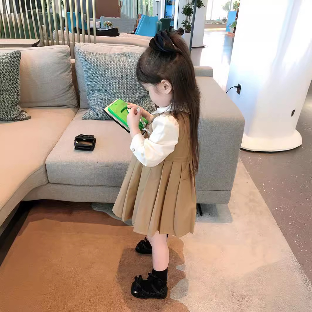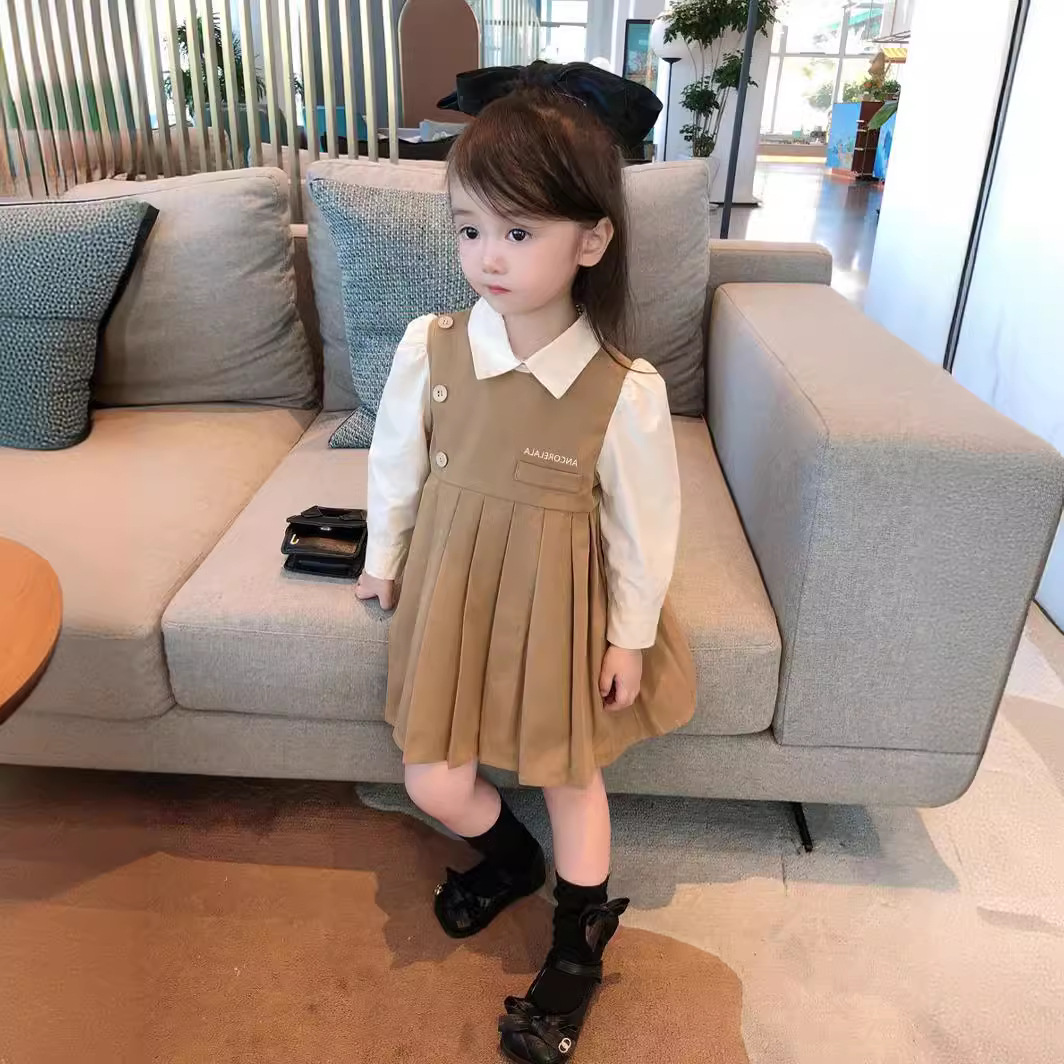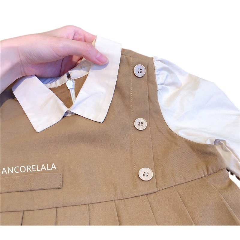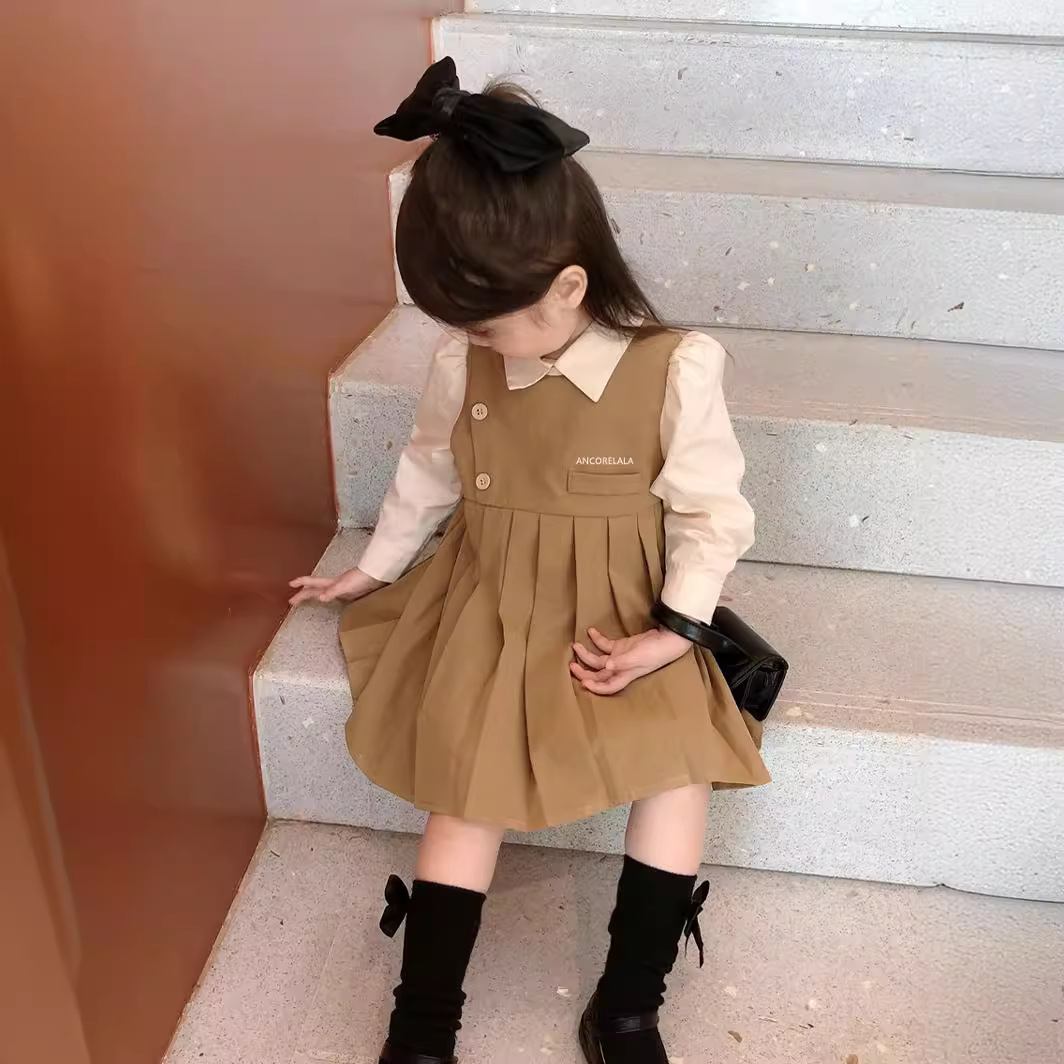 Ancorelala Autumn Baby Girl Korean Edition Fashion Academy Style Dress Fake Two Hundred Fold Dresses