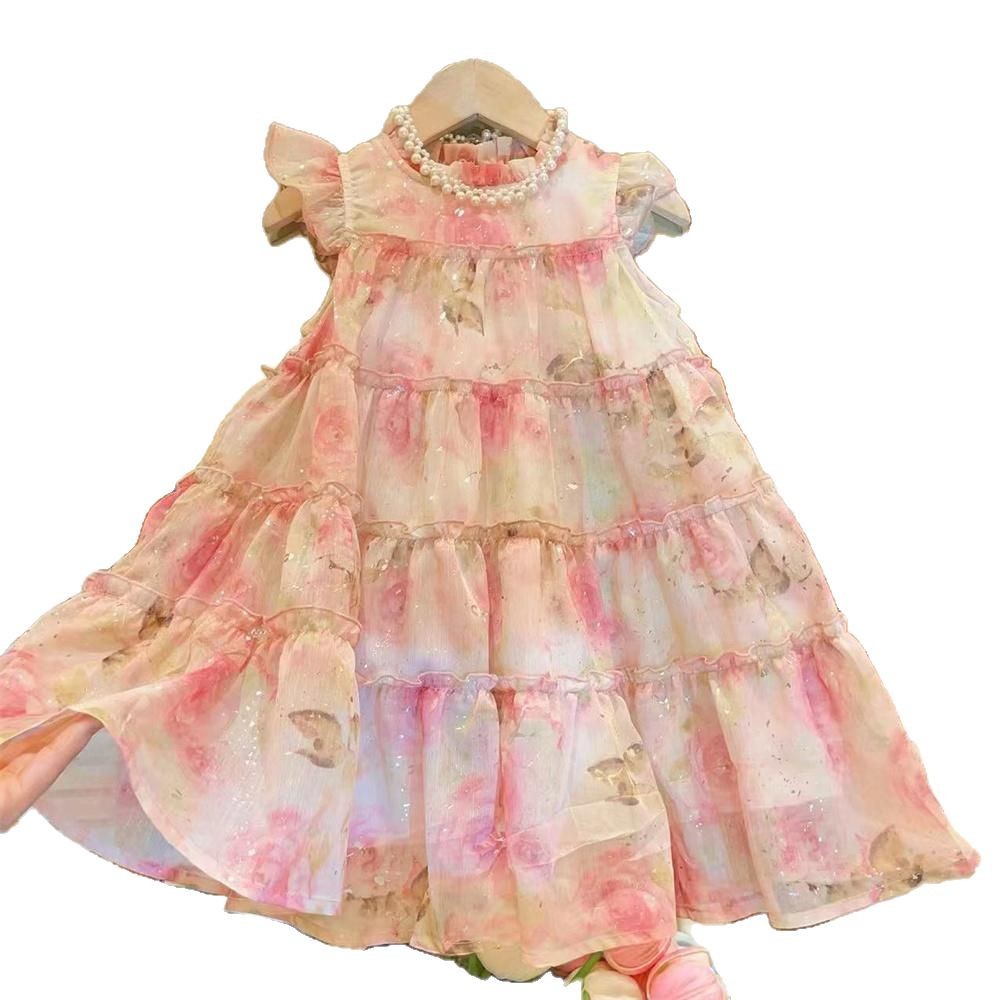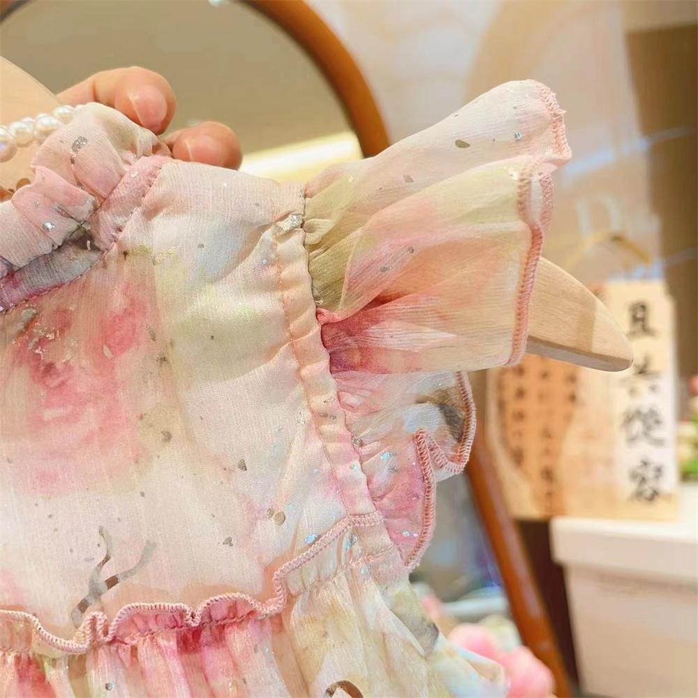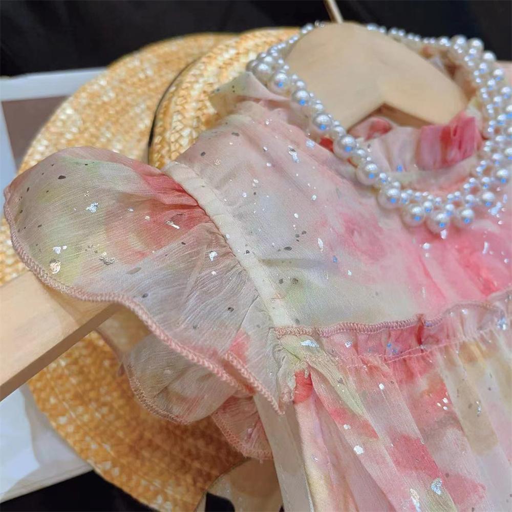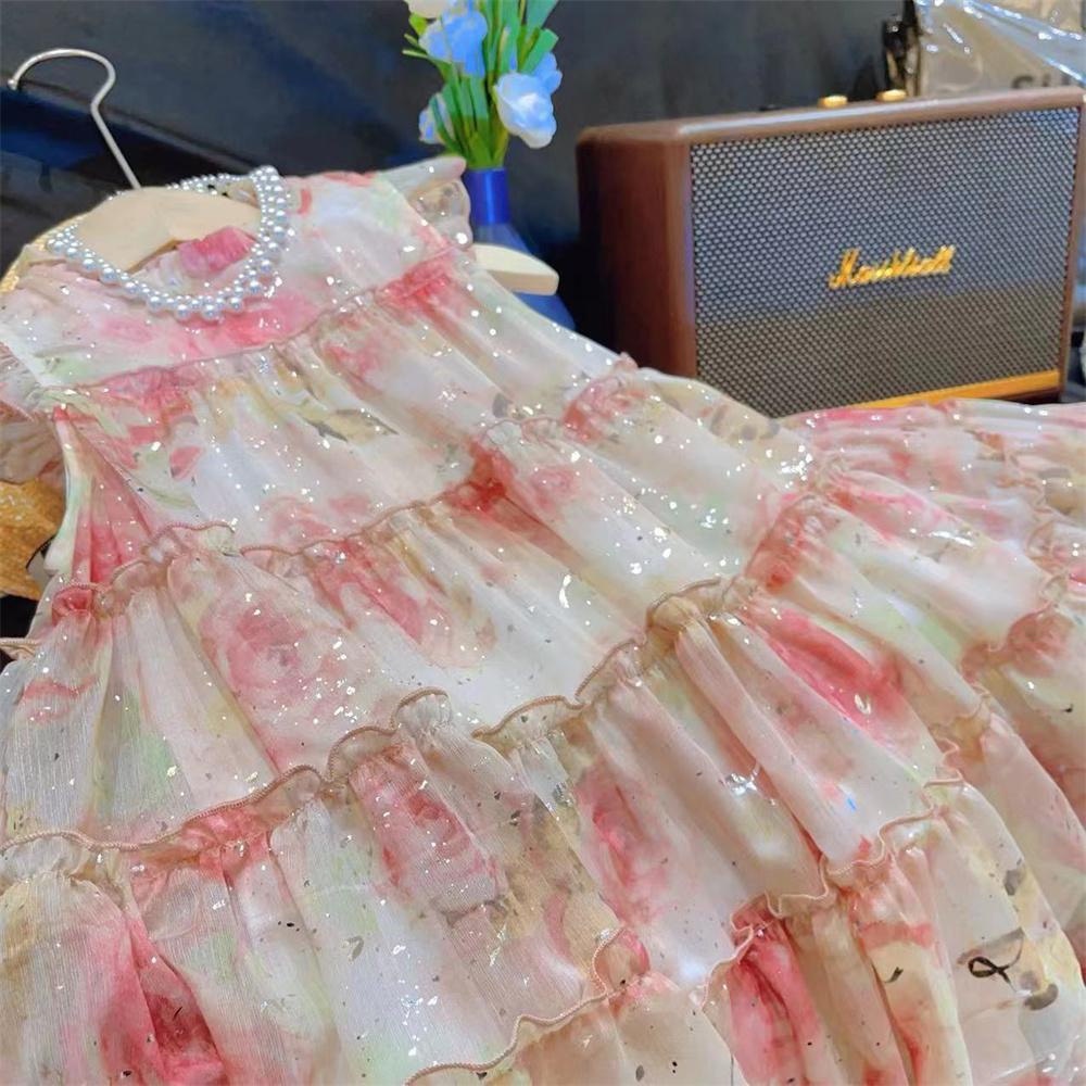 Girls' dress 2025 summer new children's floral dress, girls' mesh floral dress, women's treasure princess dress