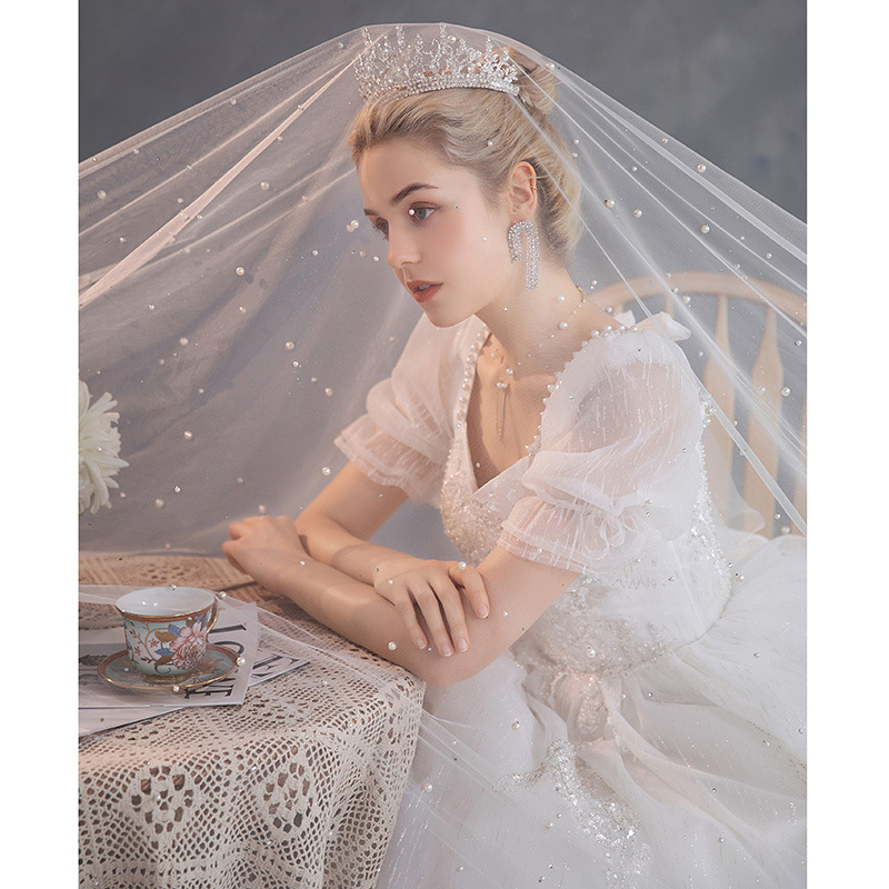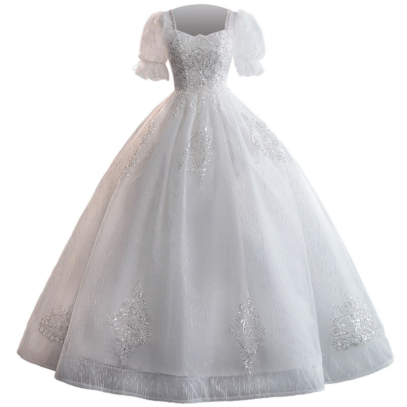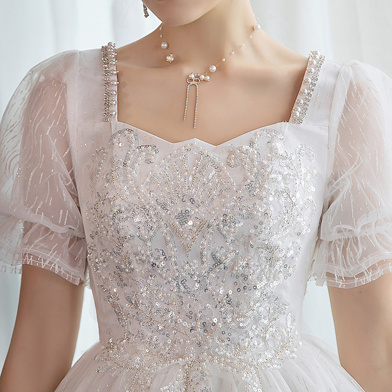 Main Wedding Dress Bridal 2025 New Style Large Tailed Female Short French Heavy Industry Summer One Shoulder Palace Style