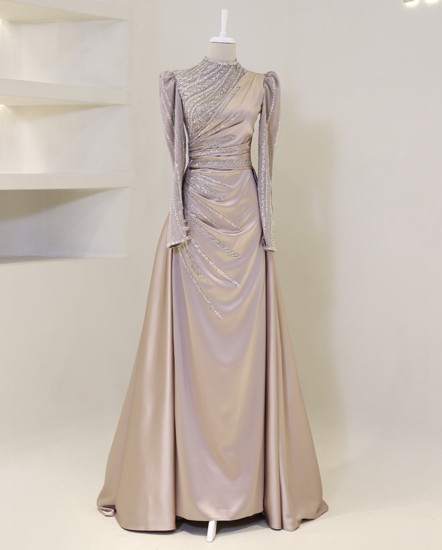 Foreign trade satin dress factory stand collar full sleeved detachable two-piece set evening dress dignified and elegant outfit