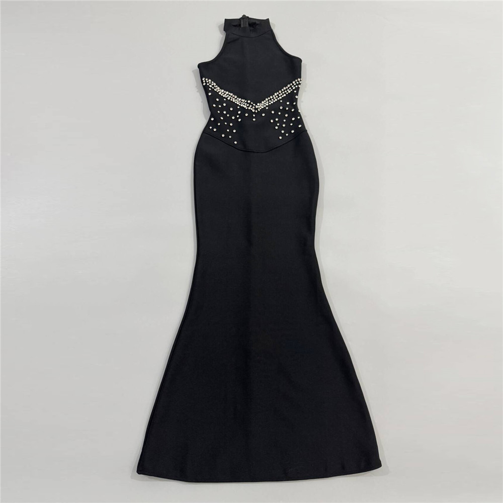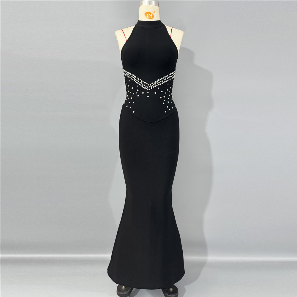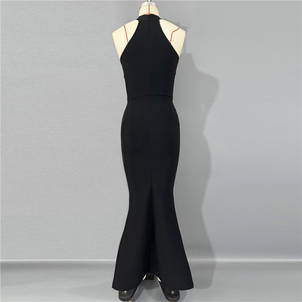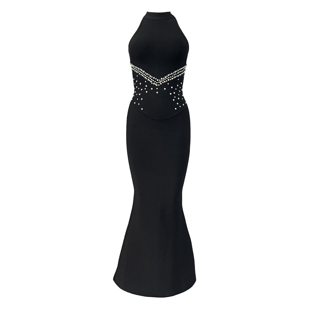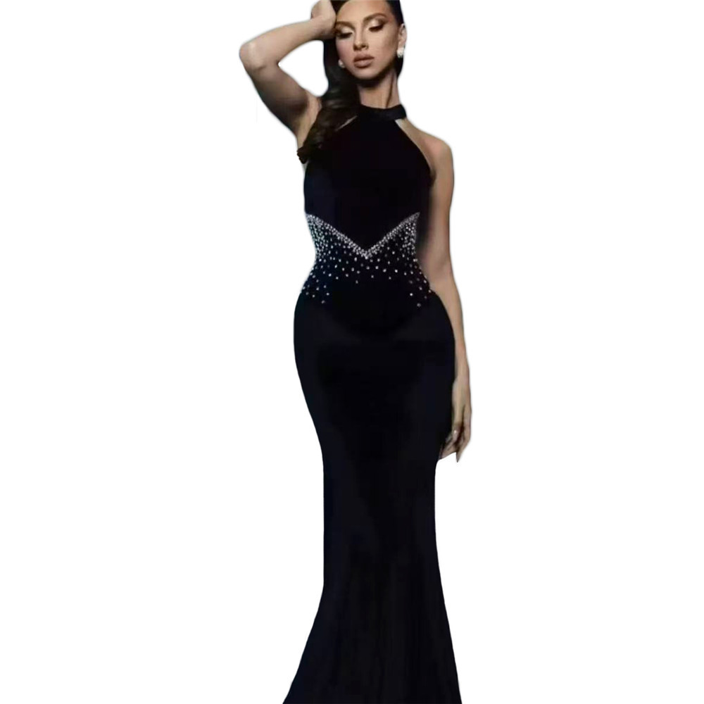 Cross border European and American sexy neck hanging, diamond studded sleeveless bandage dress, socialite temperament banquet party dress, fishtail skirt