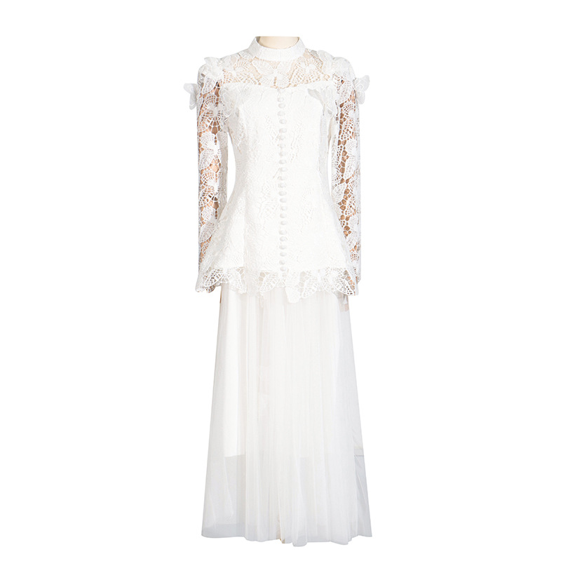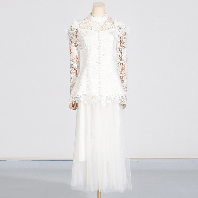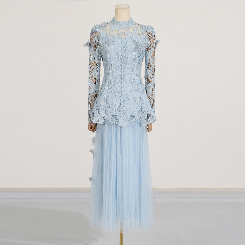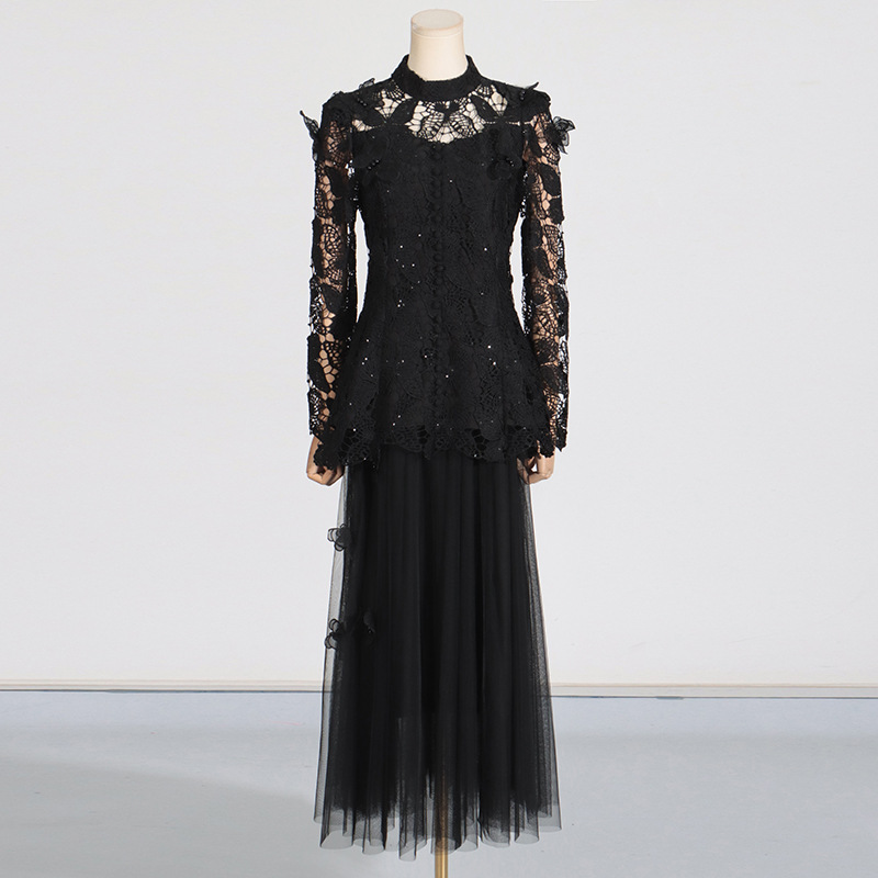 Temperament and socialite style two-piece set for summer 2025, new heavy embroidery top, long mesh skirt set for women