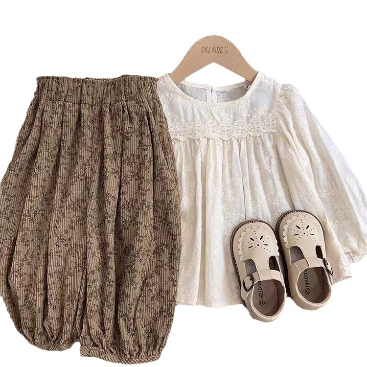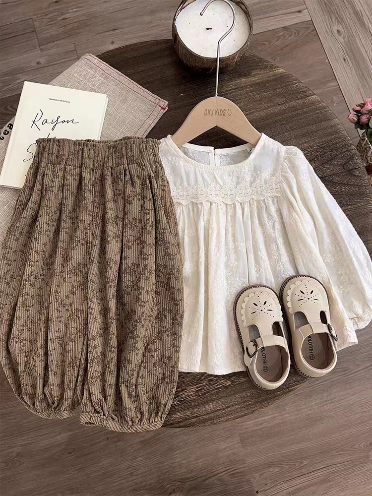 2025 autumn and winter new girls' set forest style doll shirt top with floral lantern pants two-piece set for women's fashion
