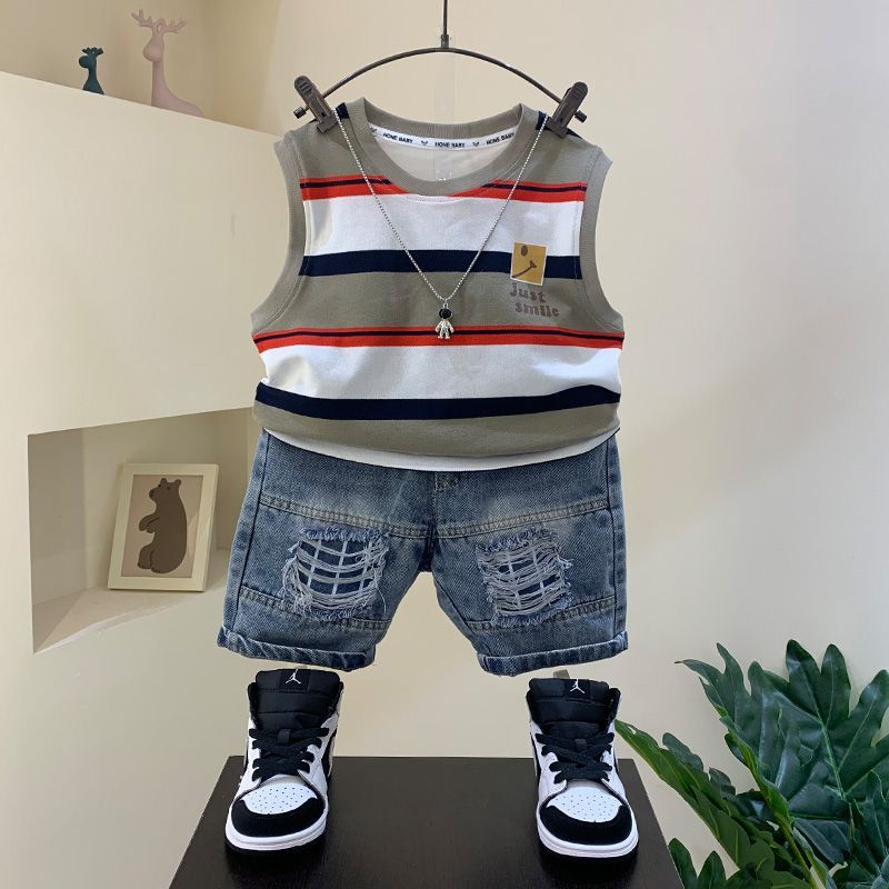 Boys' summer vest set, 23 new styles, baby internet famous explosive street sleeveless clothes, children's Han Fan Pi Shuai two-piece set