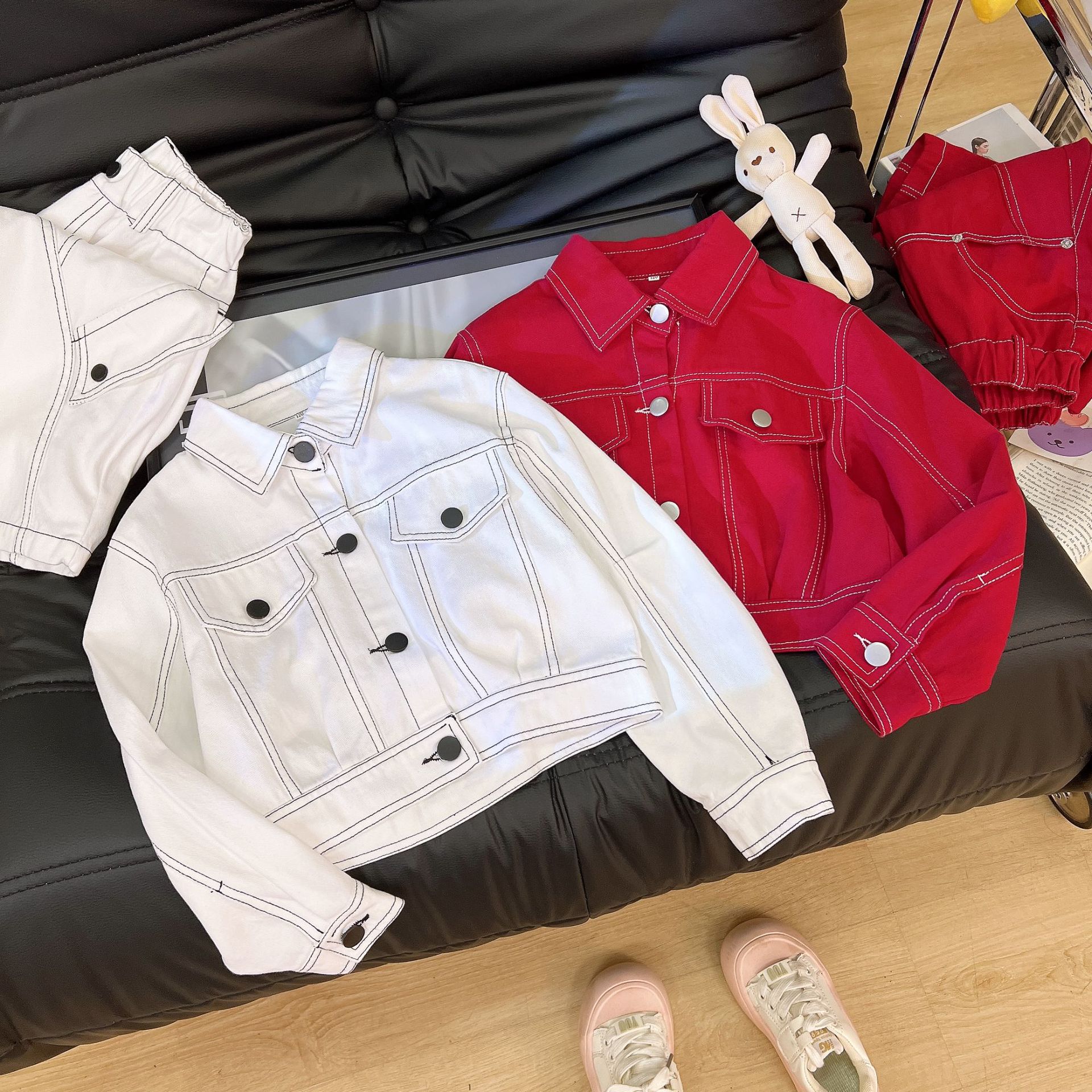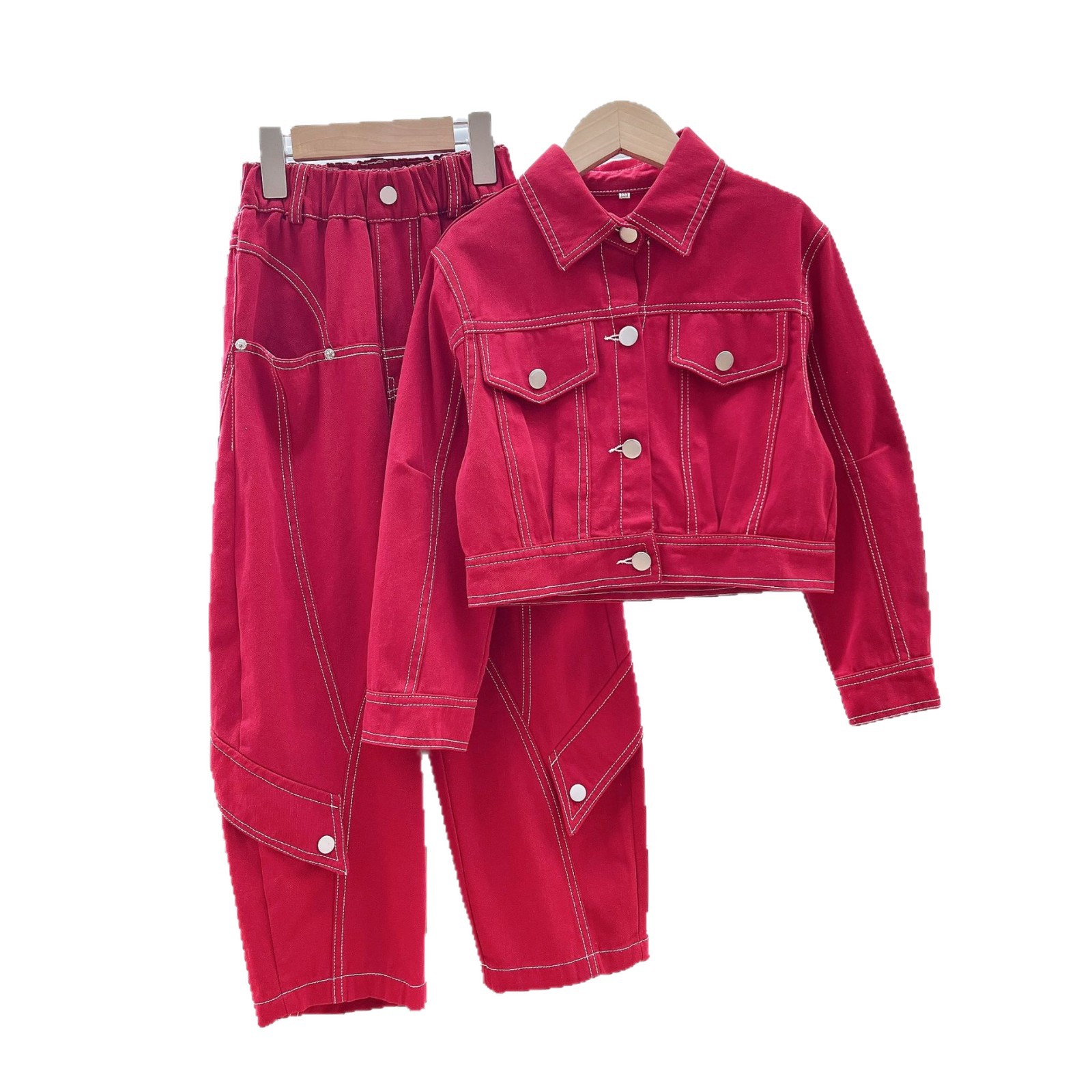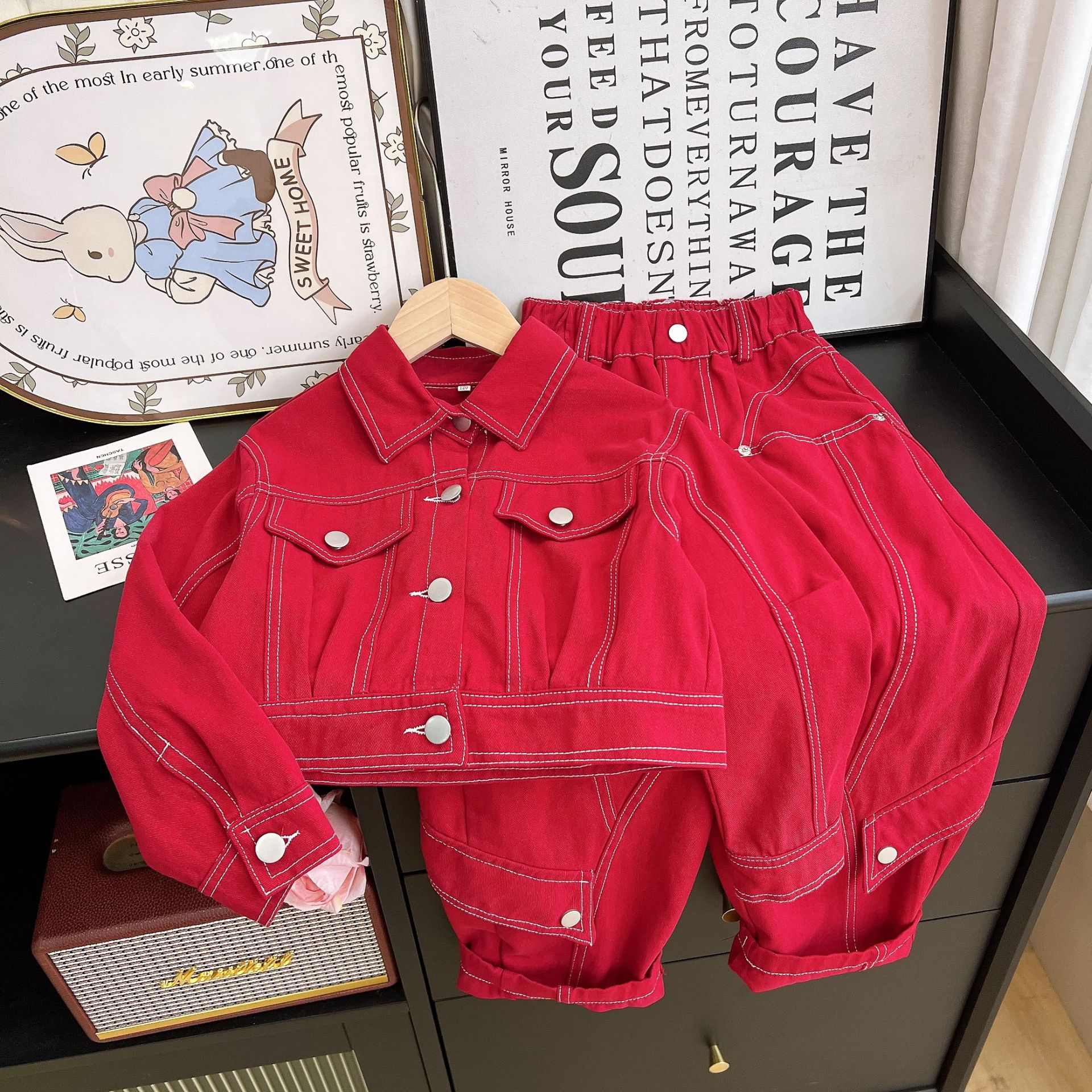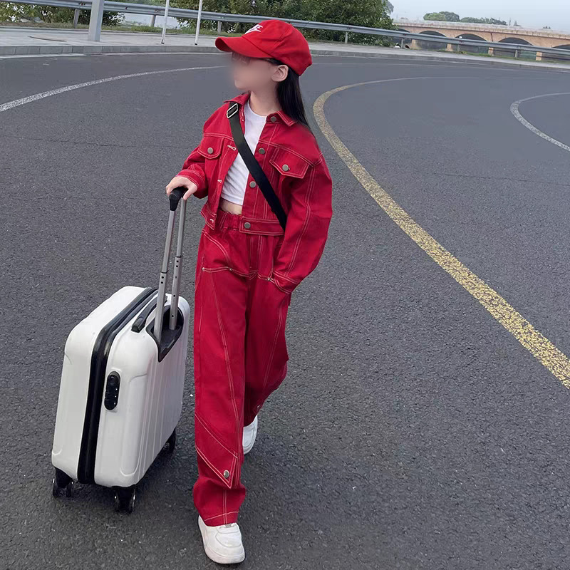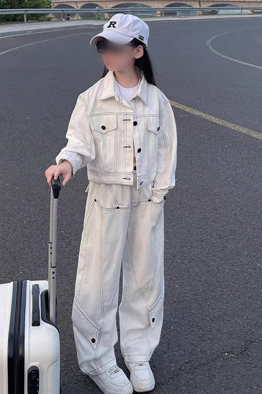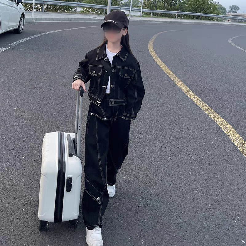 Female child labor outfit set 2025 Spring and Autumn new item, Zhongda children's fashion personality, Korean style children's denim two-piece set Spring and Autumn