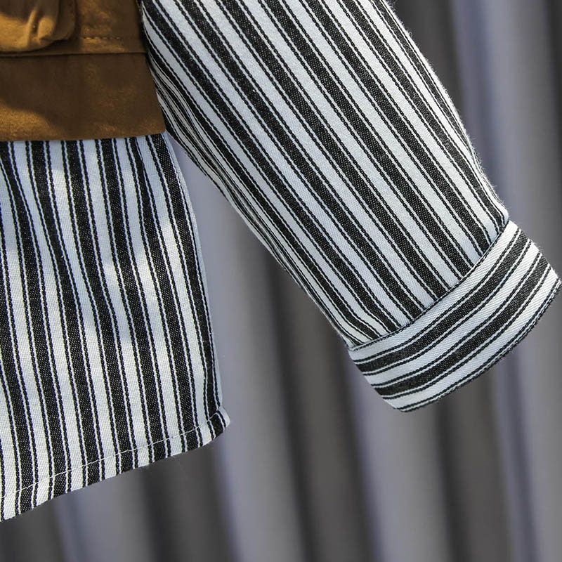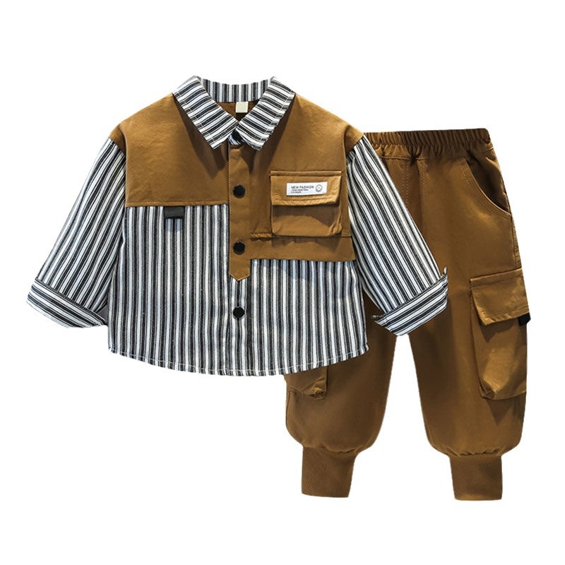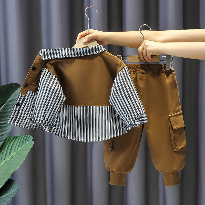 Baby Spring and Autumn Set New Handsome Splicing Long Sleeve Two Piece Set Internet Celebrity Boys Fashionable Street Explosion Striped Trendy Children