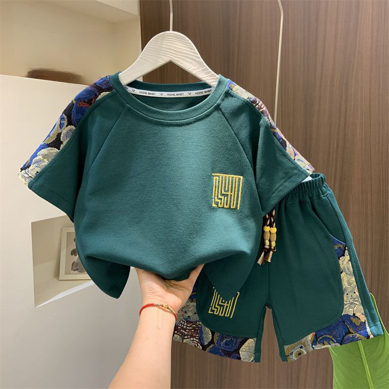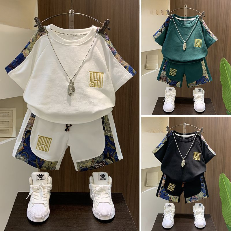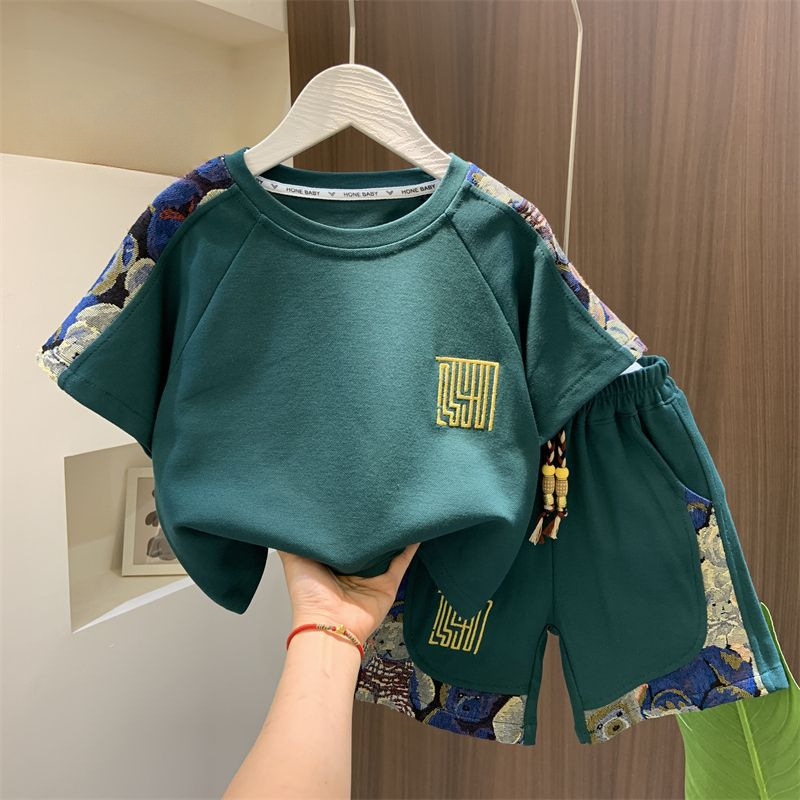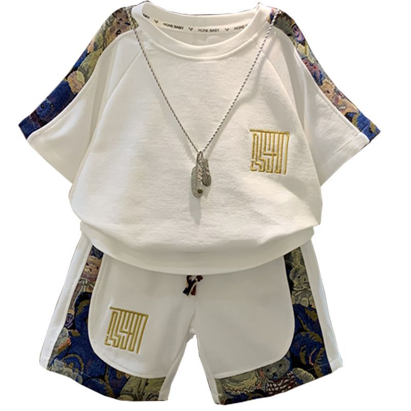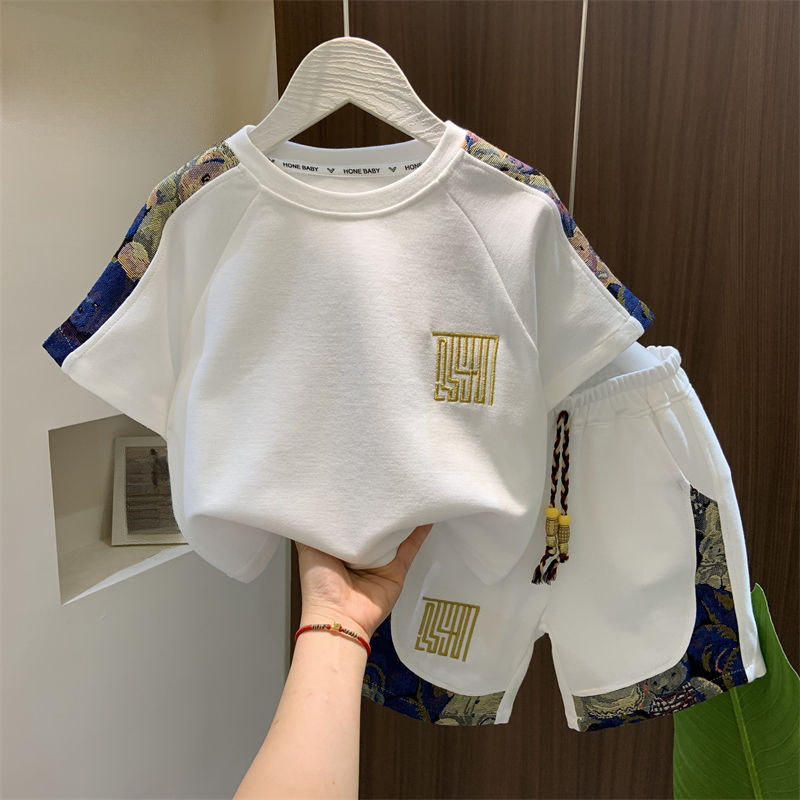 Boys' explosive street summer clothes, children's short sleeved set 2024 new baby summer T-shirt shorts two-piece set trendy