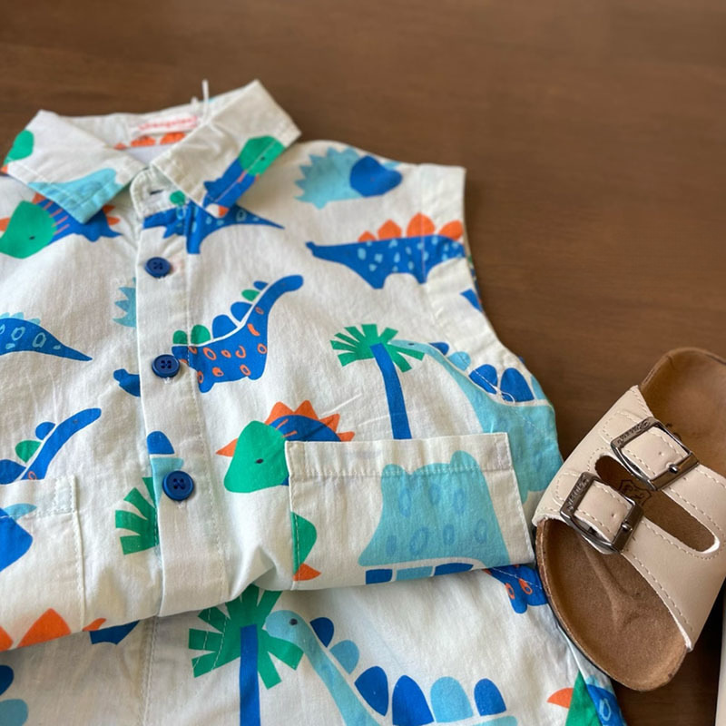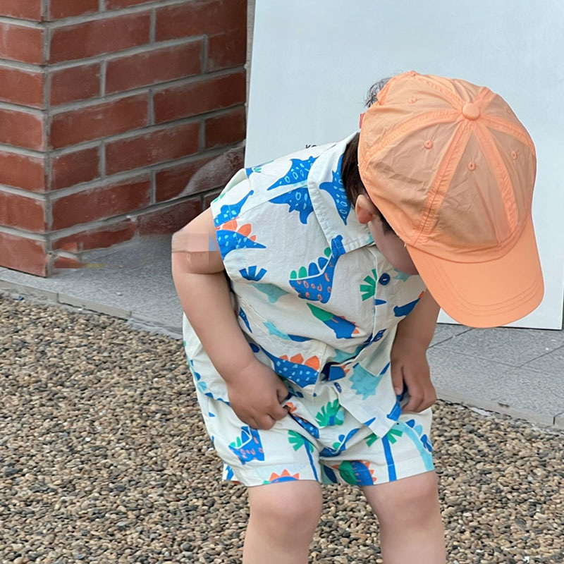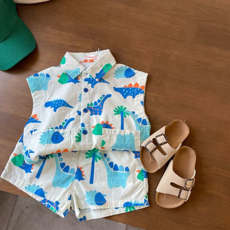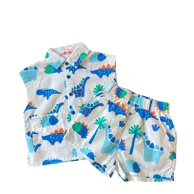 New children's clothing, summer style, Korean version, boys' and children's baby vacation style, beach style, cute cartoon cotton set