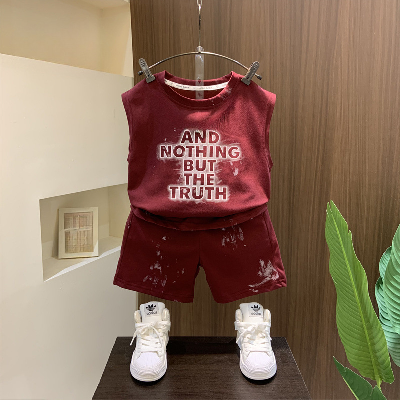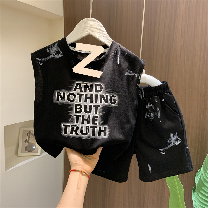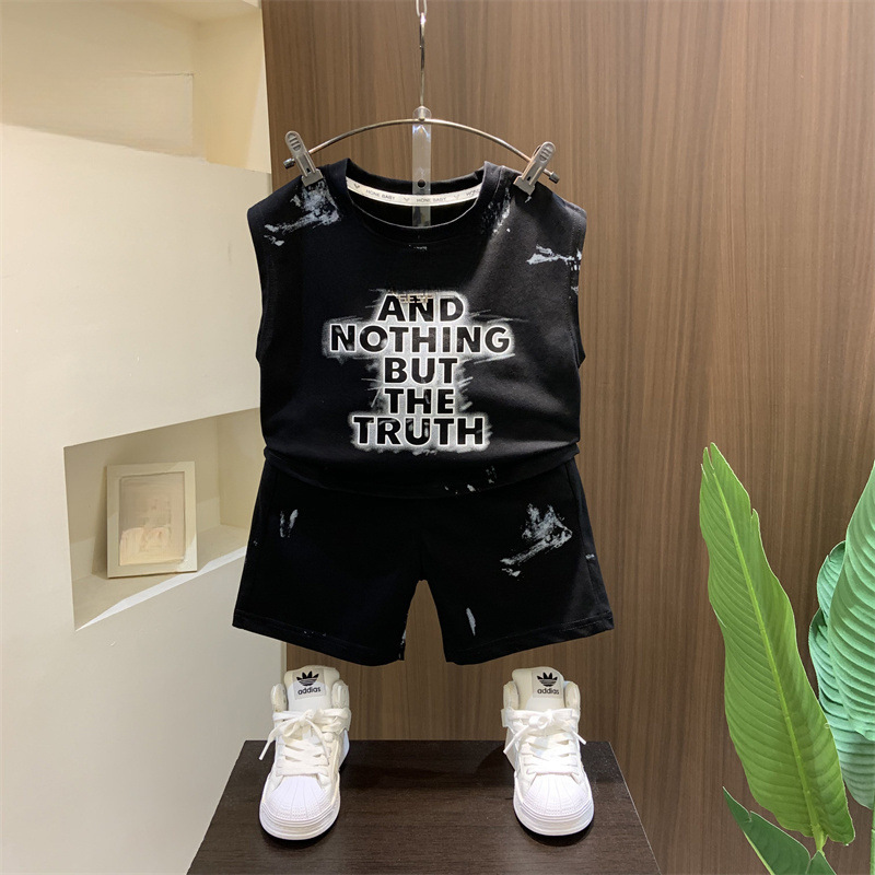 Children's clothing boys' summer suit 2025 new stylish children's vest shorts two-piece set baby summer clothes thin