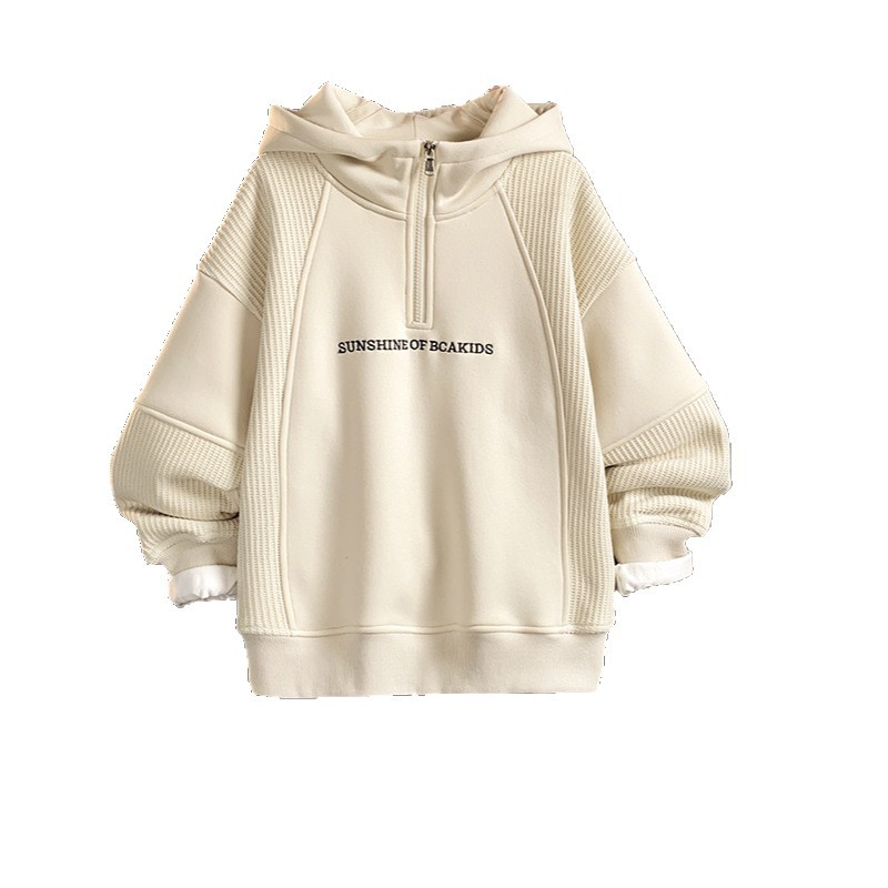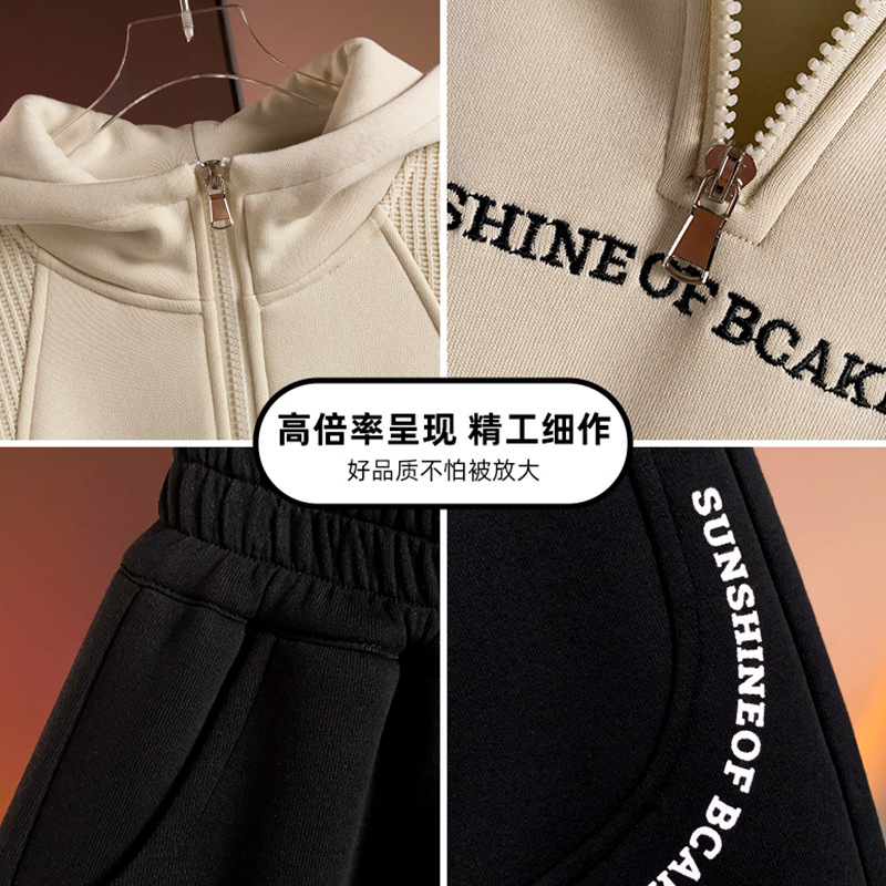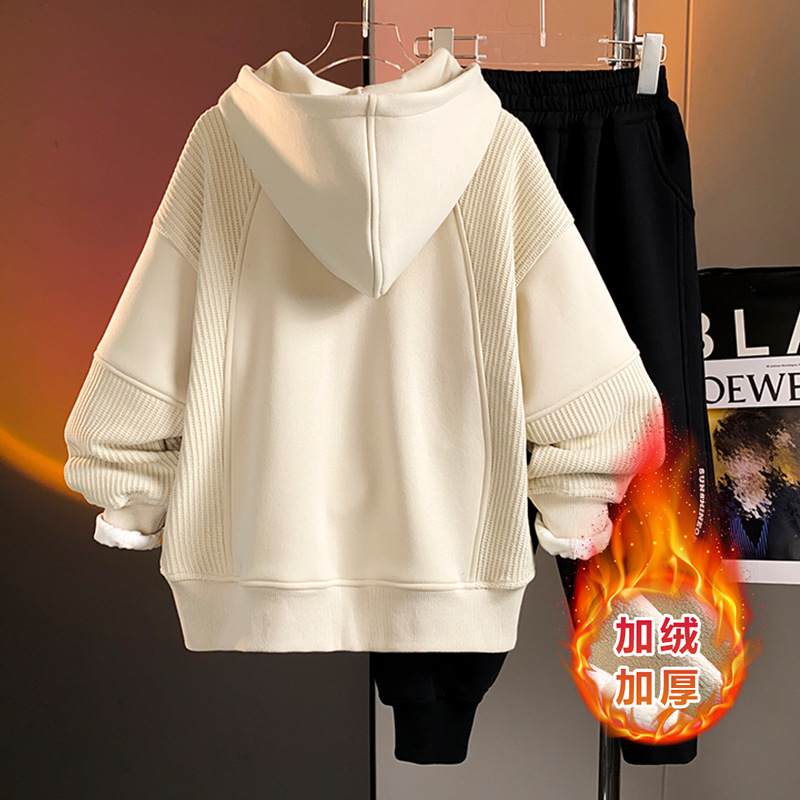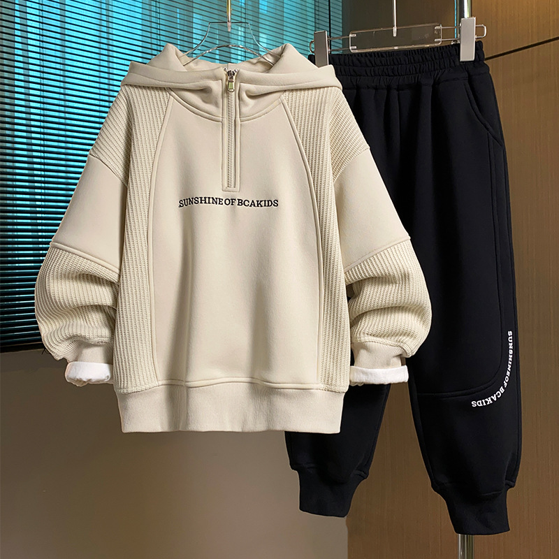 Children's clothing boys' hoodie set for autumn and winter 2025, new style, rugged and handsome, mid size children's autumn and winter with fleece hooded hoodie two-piece set