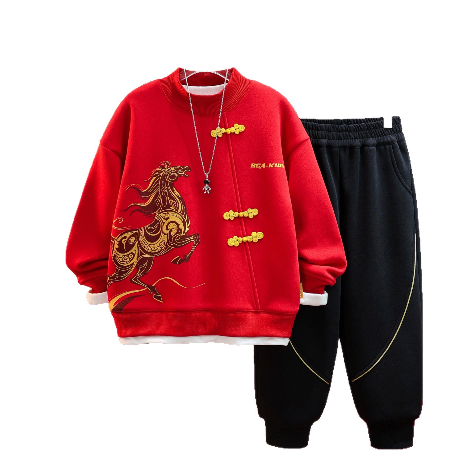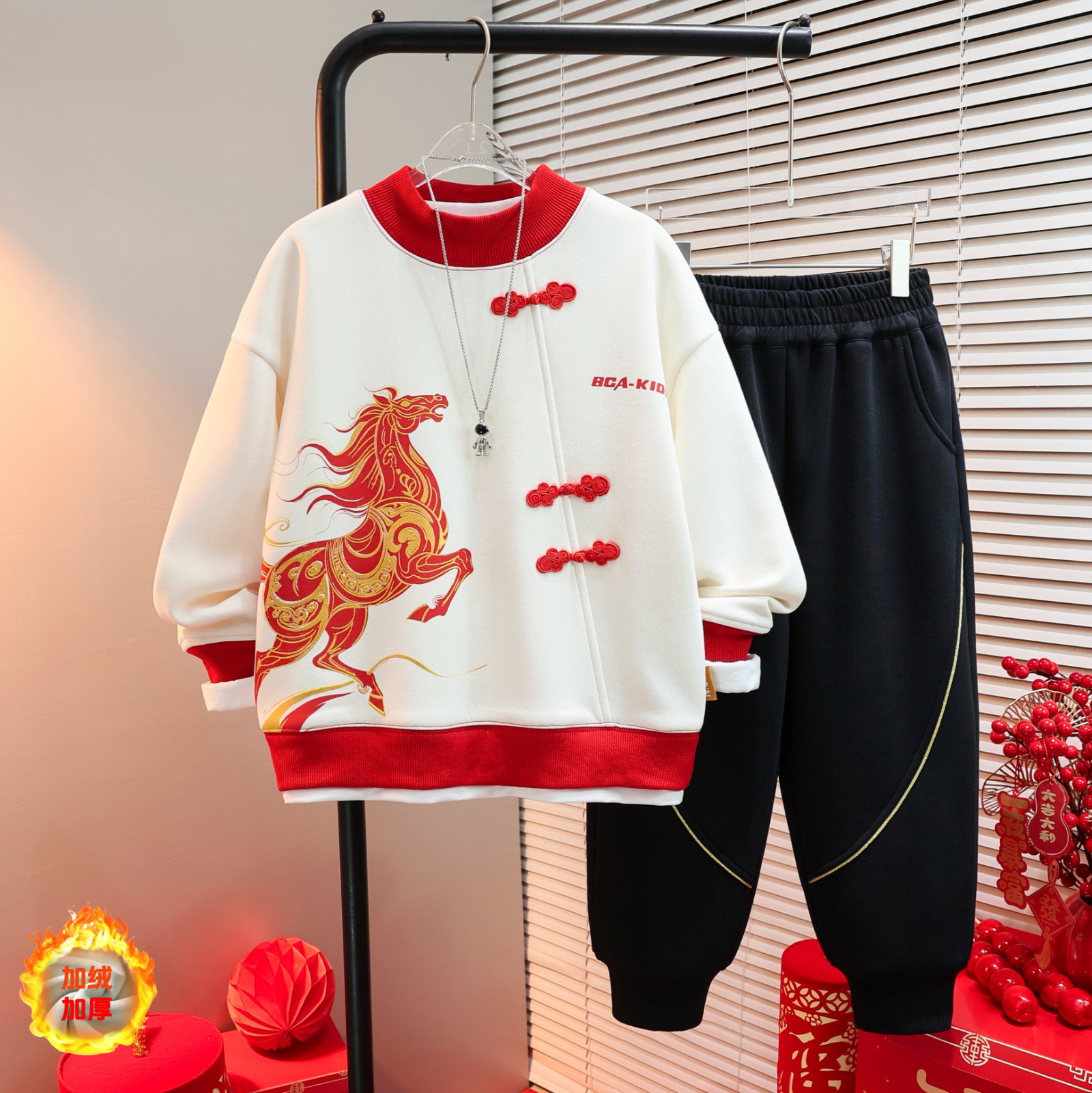 Boys' Thick Warmth Set 2025 Winter New Style Boys' Leisure Sports Two piece Set Stylish and Cool Winter Clothing