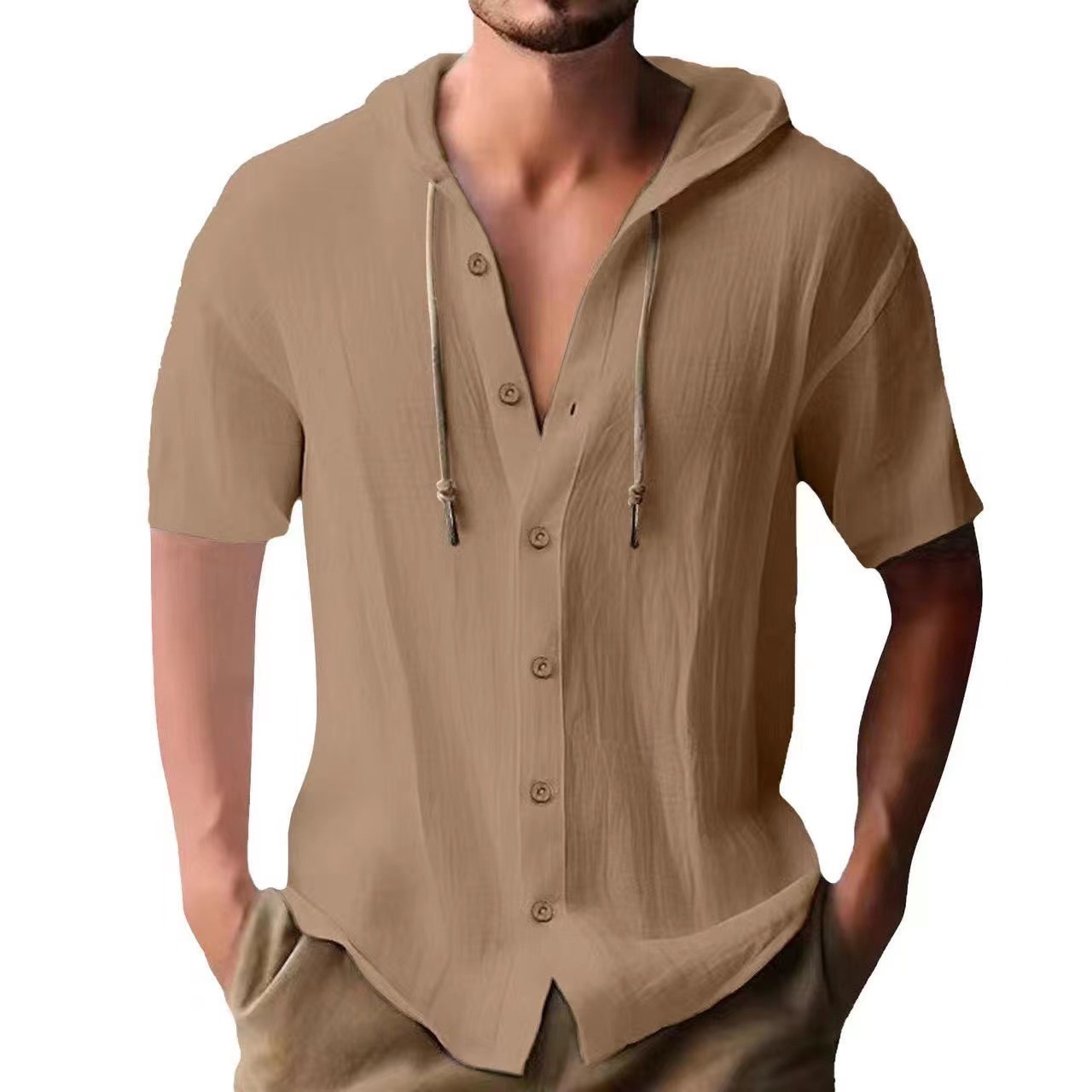 Cross border European and American men's sports and leisure hooded short sleeved shirt sweatshirt versatile loose beach suit simple and casual