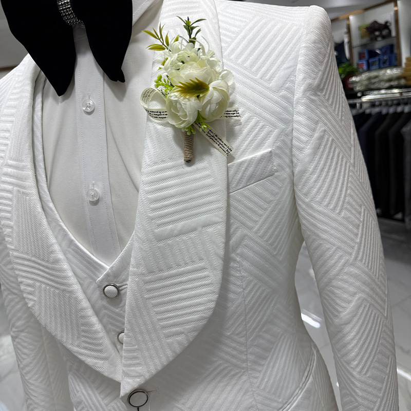 Man suit cross-border foreign trade white suit men's wedding casual hosting suit 3-piece set