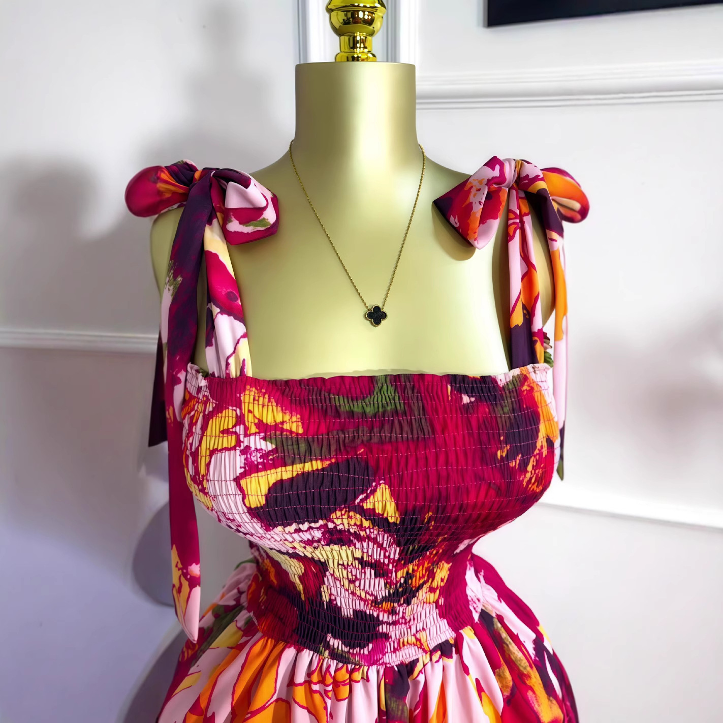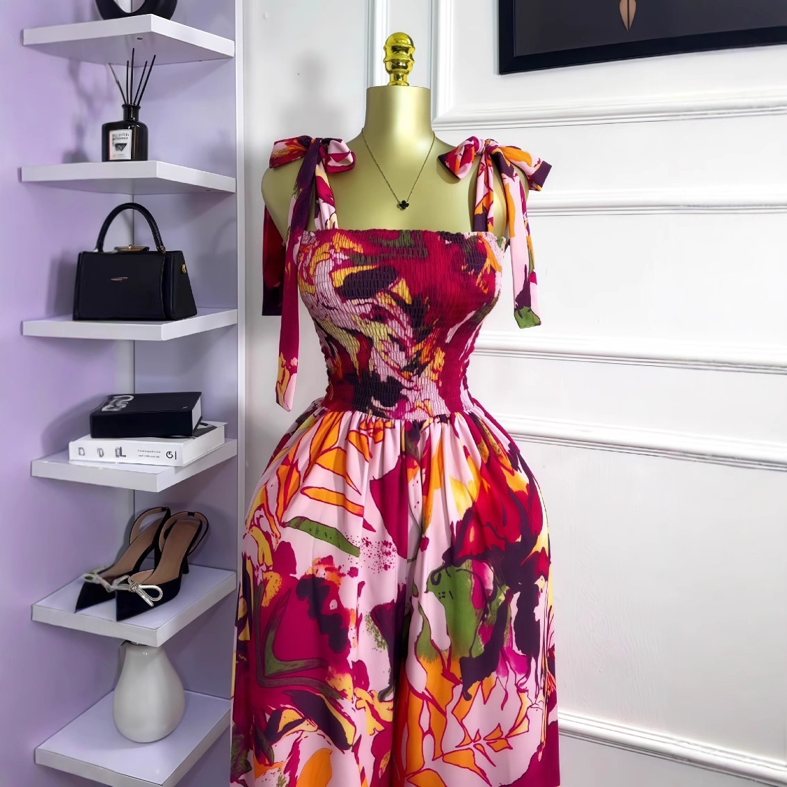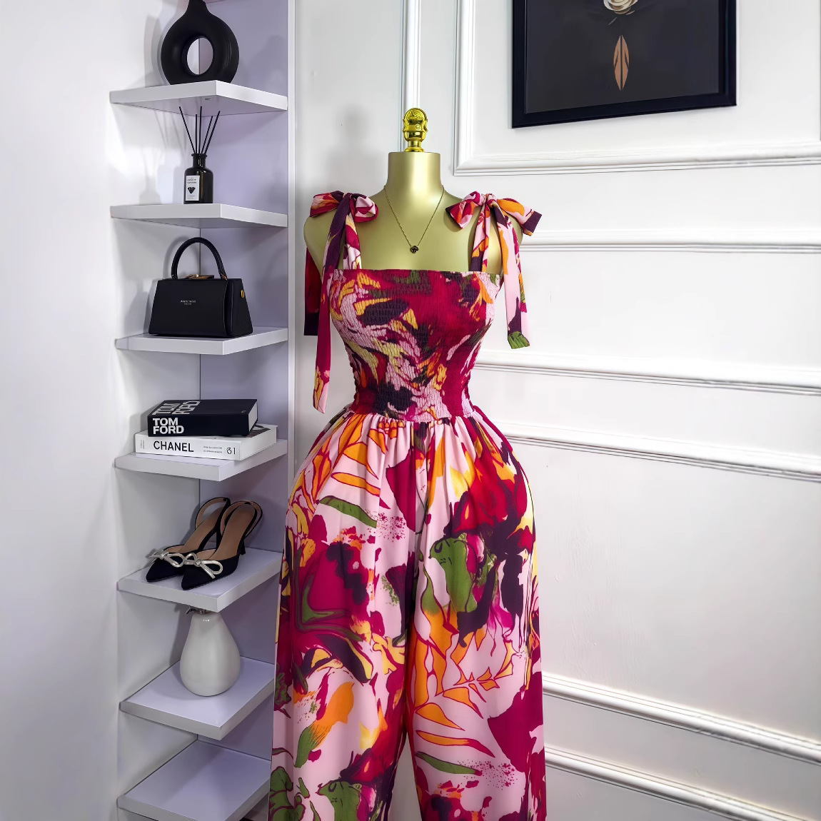 European and American cross-border women's clothing 2025 summer new sleeveless bow tie strapless strapless waist cinching long printed jumpsuit