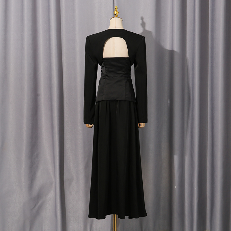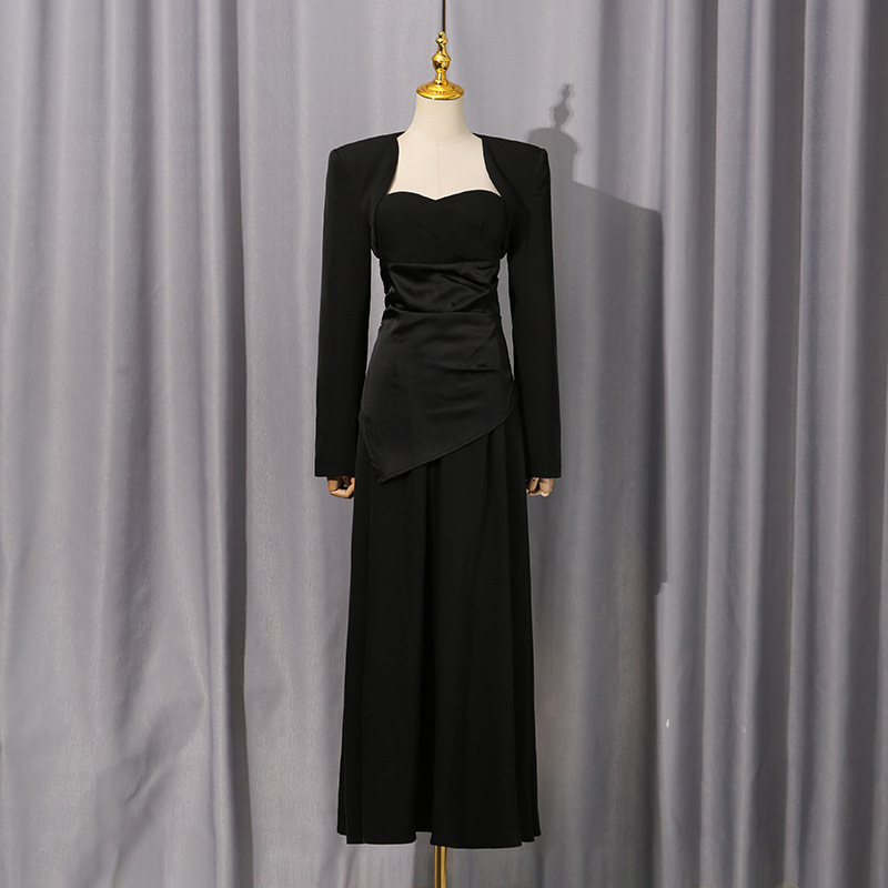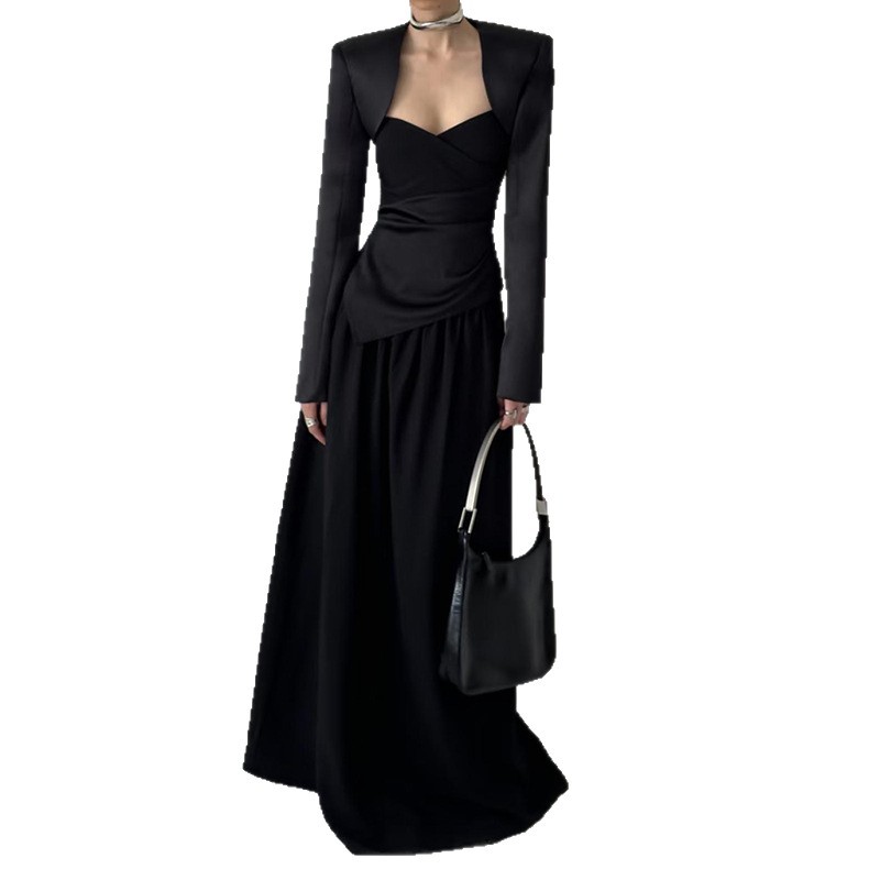 High end temperament three piece set 2025 new shawl jacket+irregular patchwork strapless top+half body long skirt set