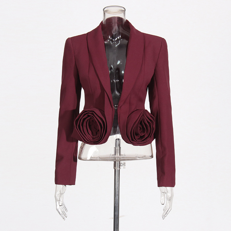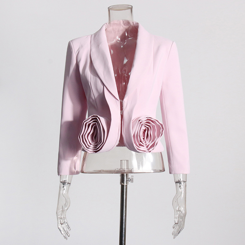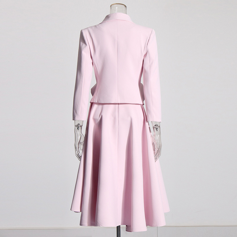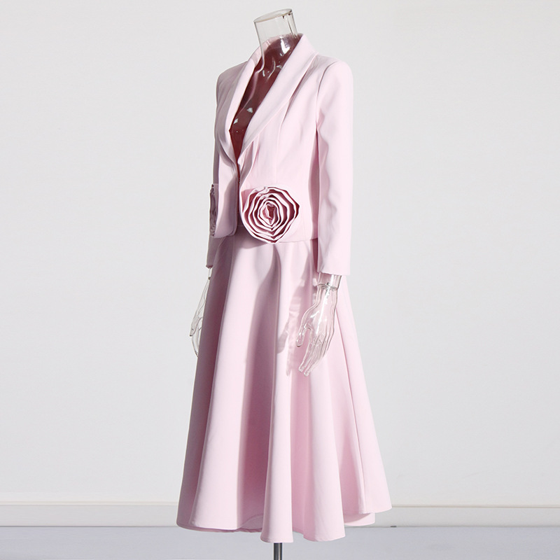 2025 new pink three-dimensional rose two-piece suit with waist cinching and slimming effect+pleated mid length skirt set