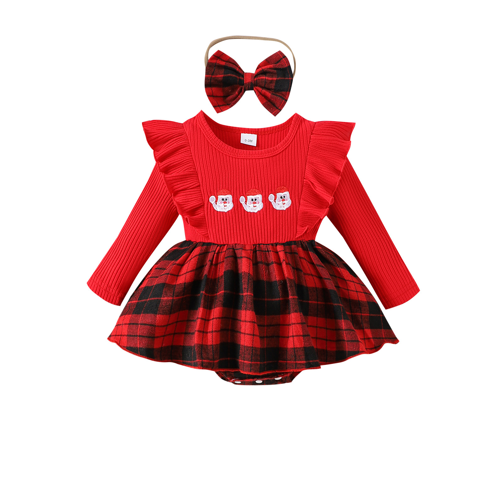 Cross border children's clothing for girls and babies, Santa Claus red long sleeved jumpsuit