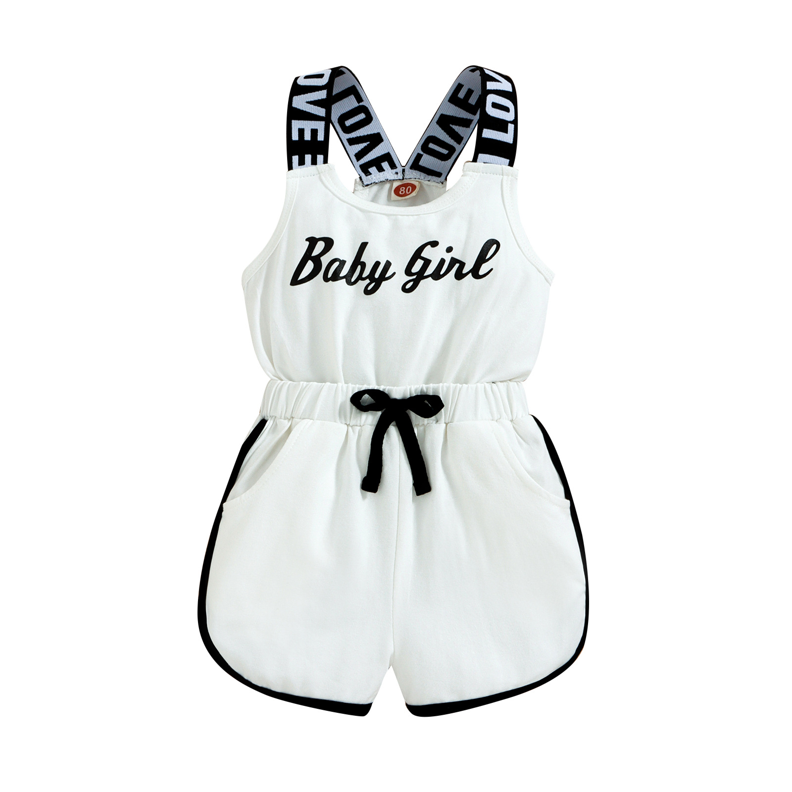 Cross border children's clothing Amazon Ins girls' letter printed pull up jumpsuit suspender bow jumpsuit in stock