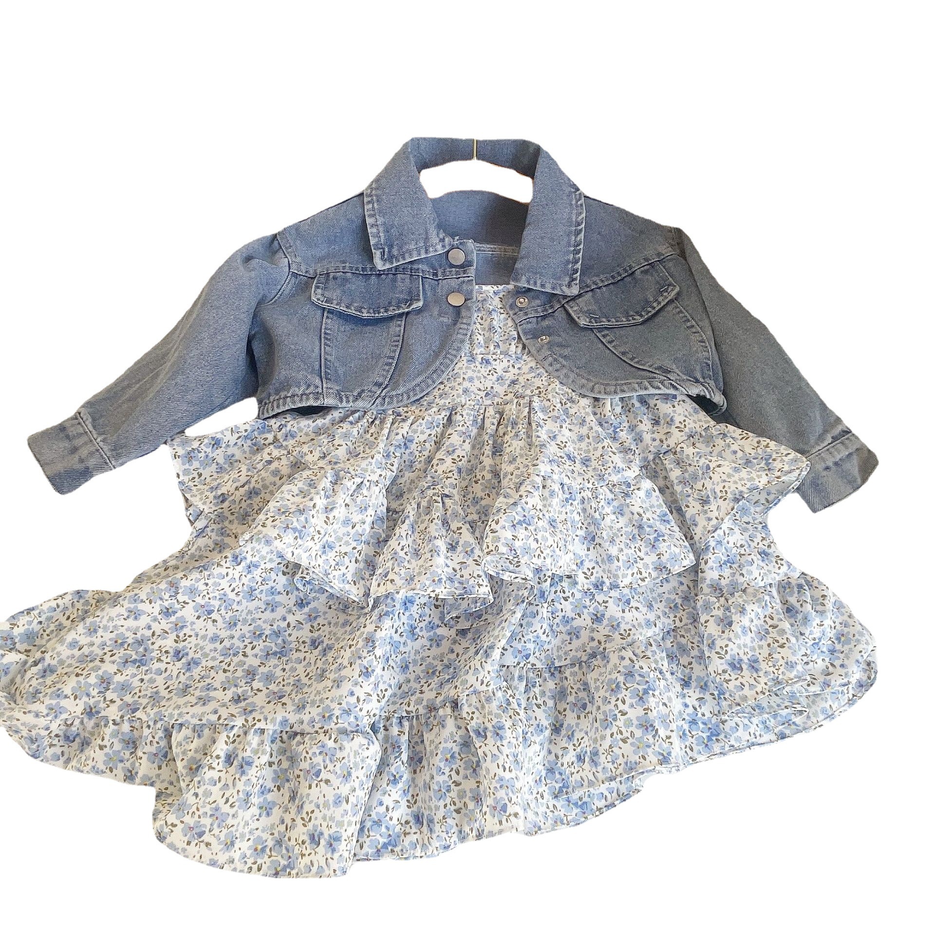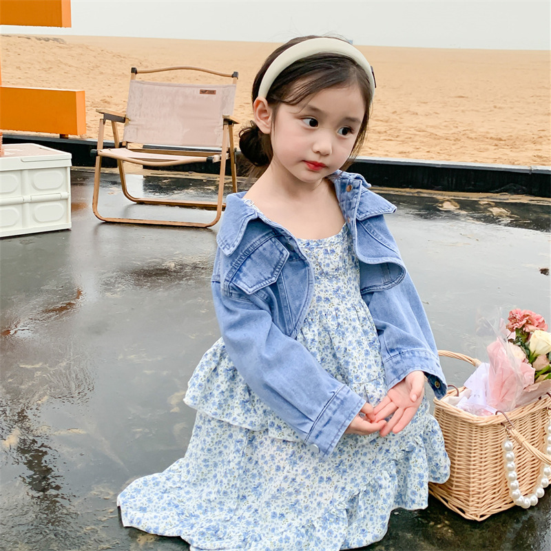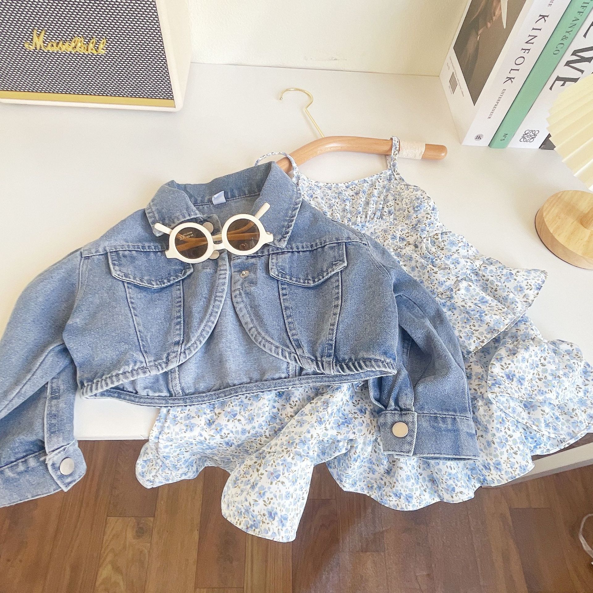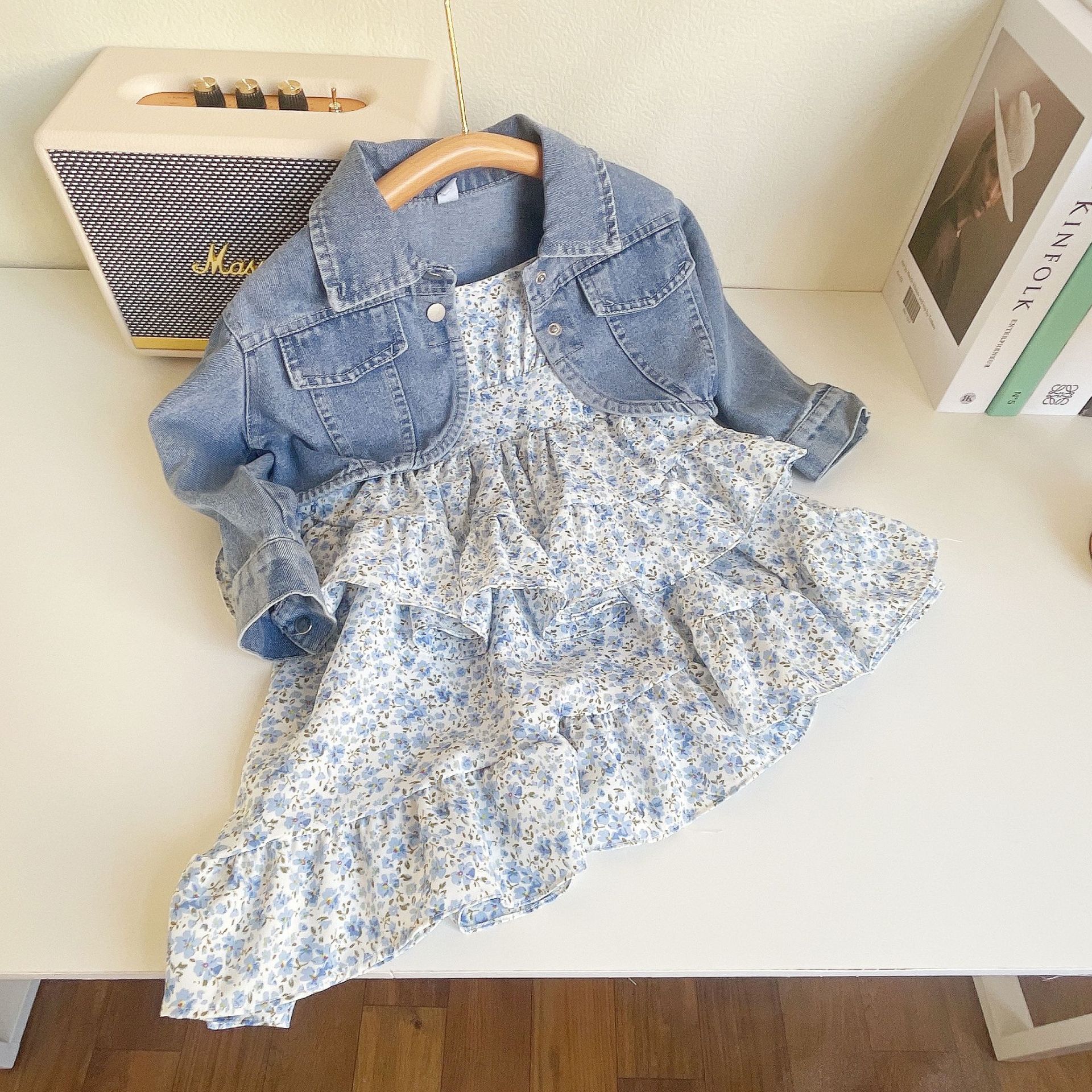 Ancorelala 2023 Spring and Summer New Girls' Set Cowboy Short Coat with Strap Dress Two Piece Set