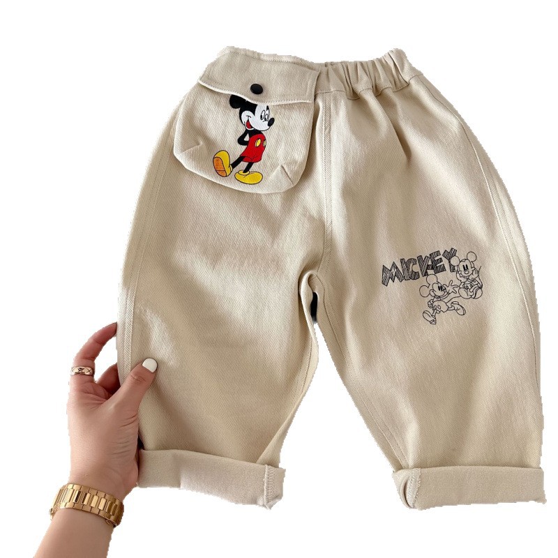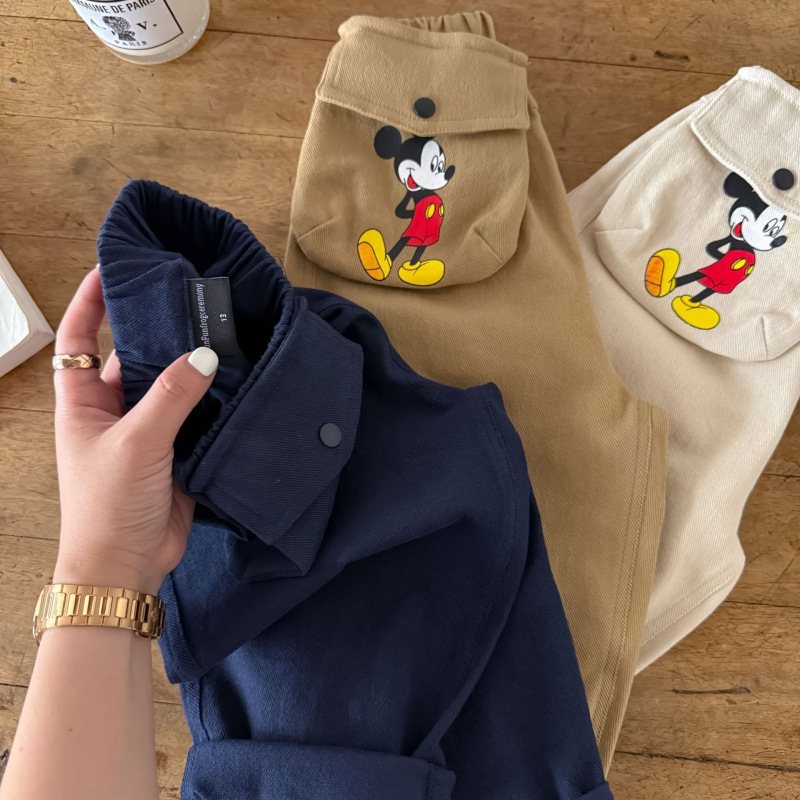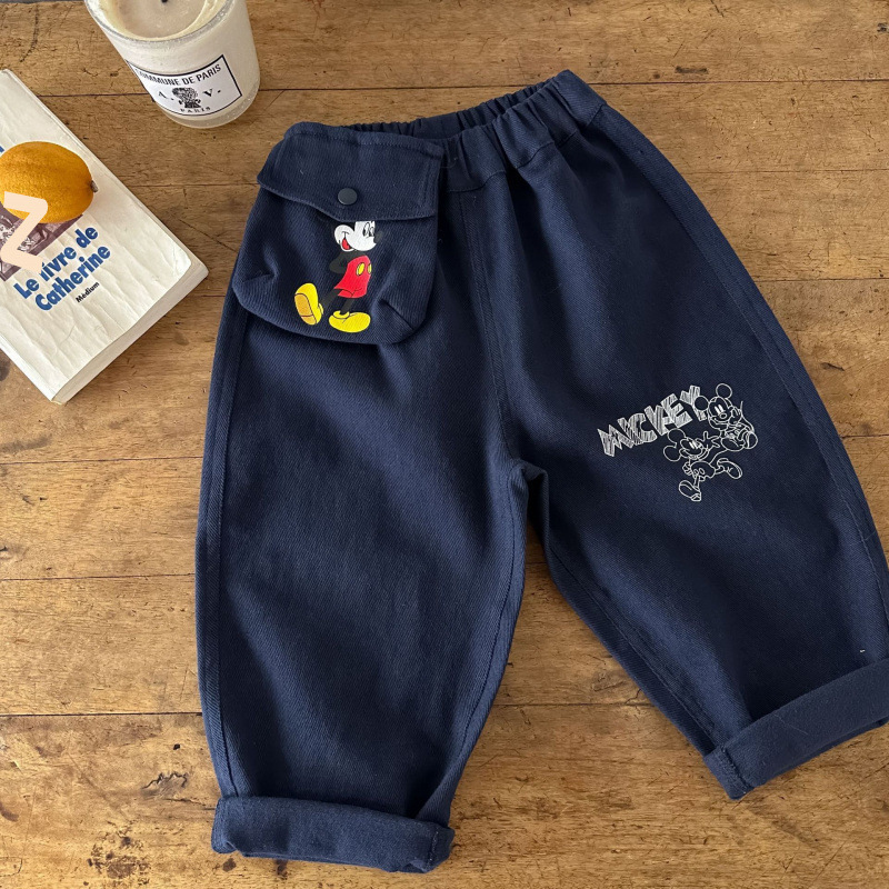 Children's pants 2025 autumn boys' cartoon printed cotton pants, baby's big pocket casual straight leg pants trendy