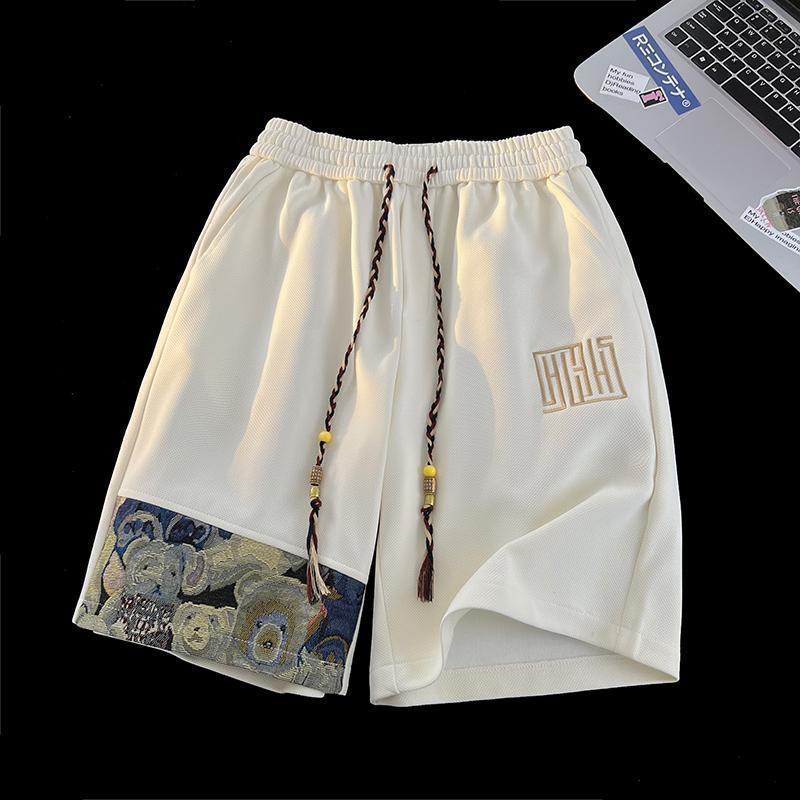 New breathable 2025 shorts for men's summer bear splicing style, trendy brand sports and casual loose five quarter pants