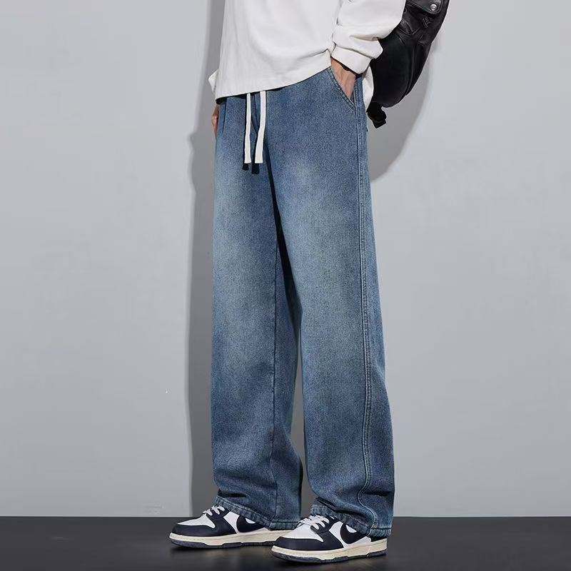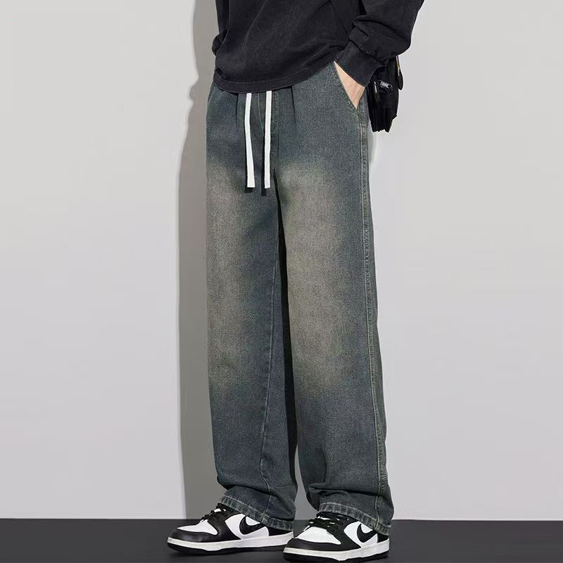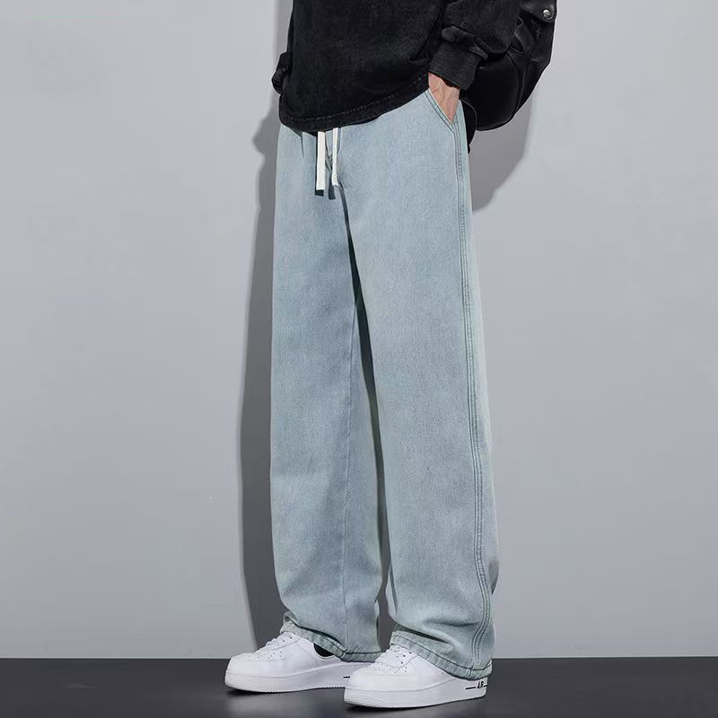 Clothing summer thin jeans men's loose straight leg wide leg pants 2025 new trendy brand casual pants