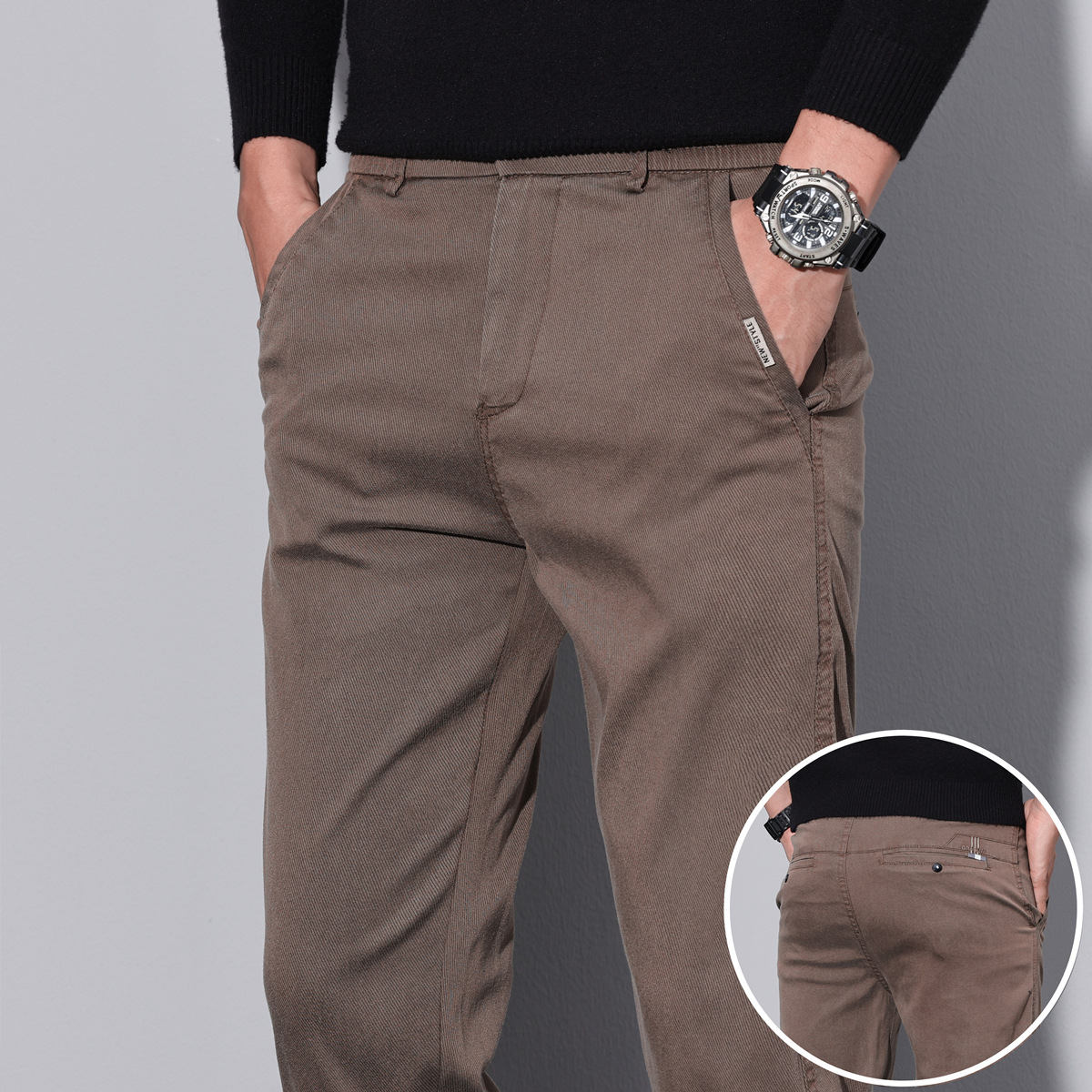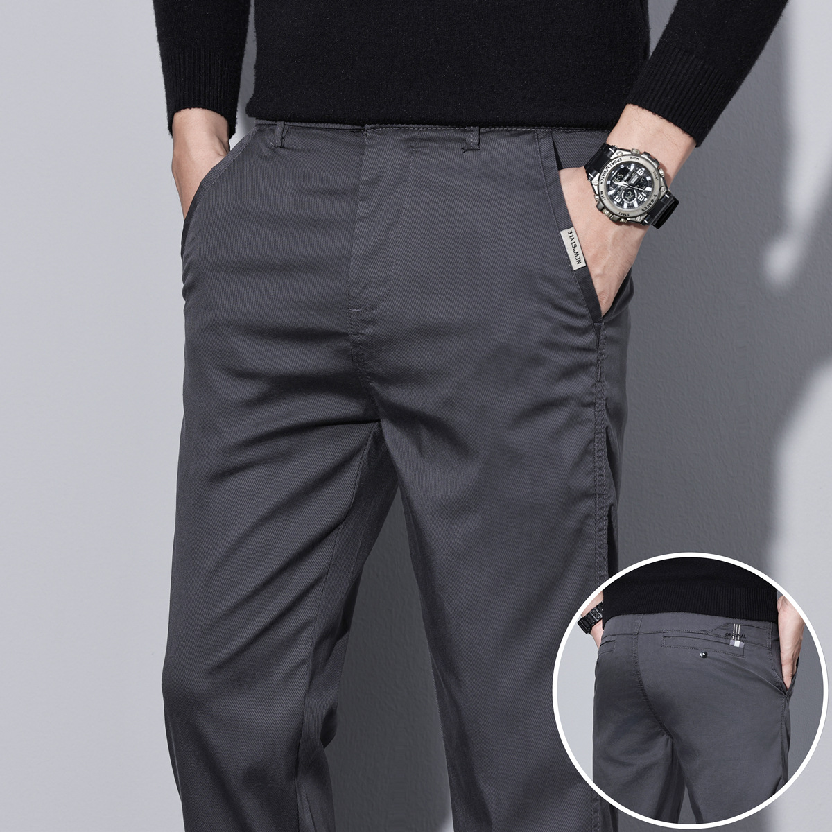 Clothing autumn and winter new casual pants men's straight tube trend medium thick elastic light business slim fit slimming trousers