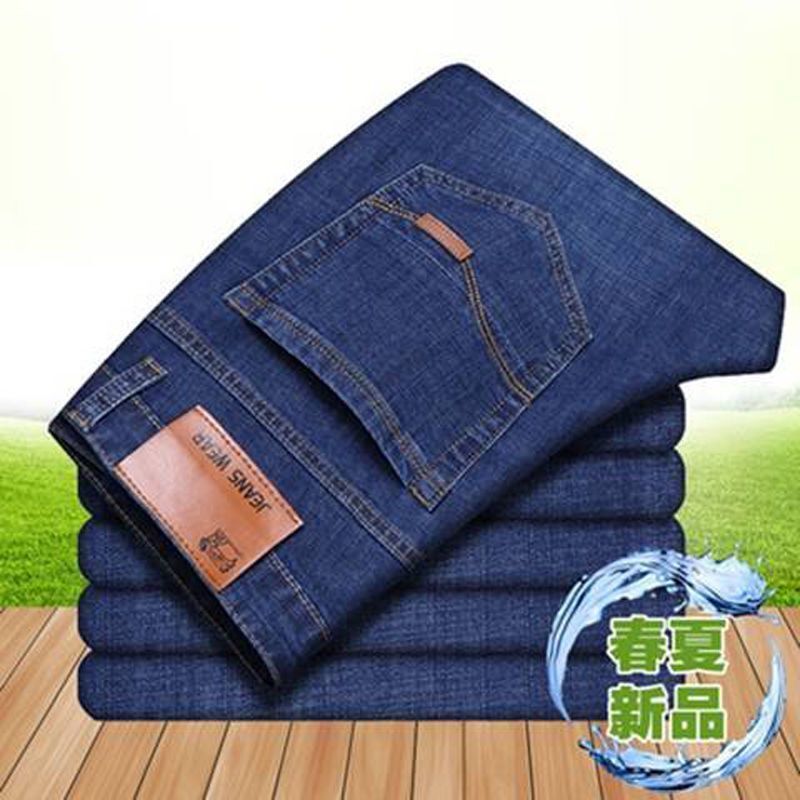 In stock summer elastic thin Dragon Trade men's jeans straight tube loose casual special offer men's work wear-resistant pants