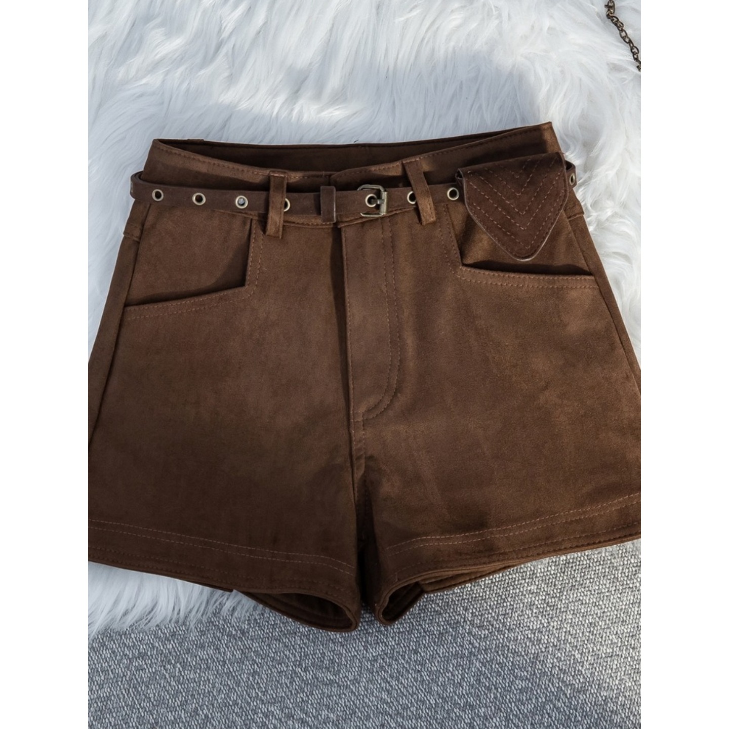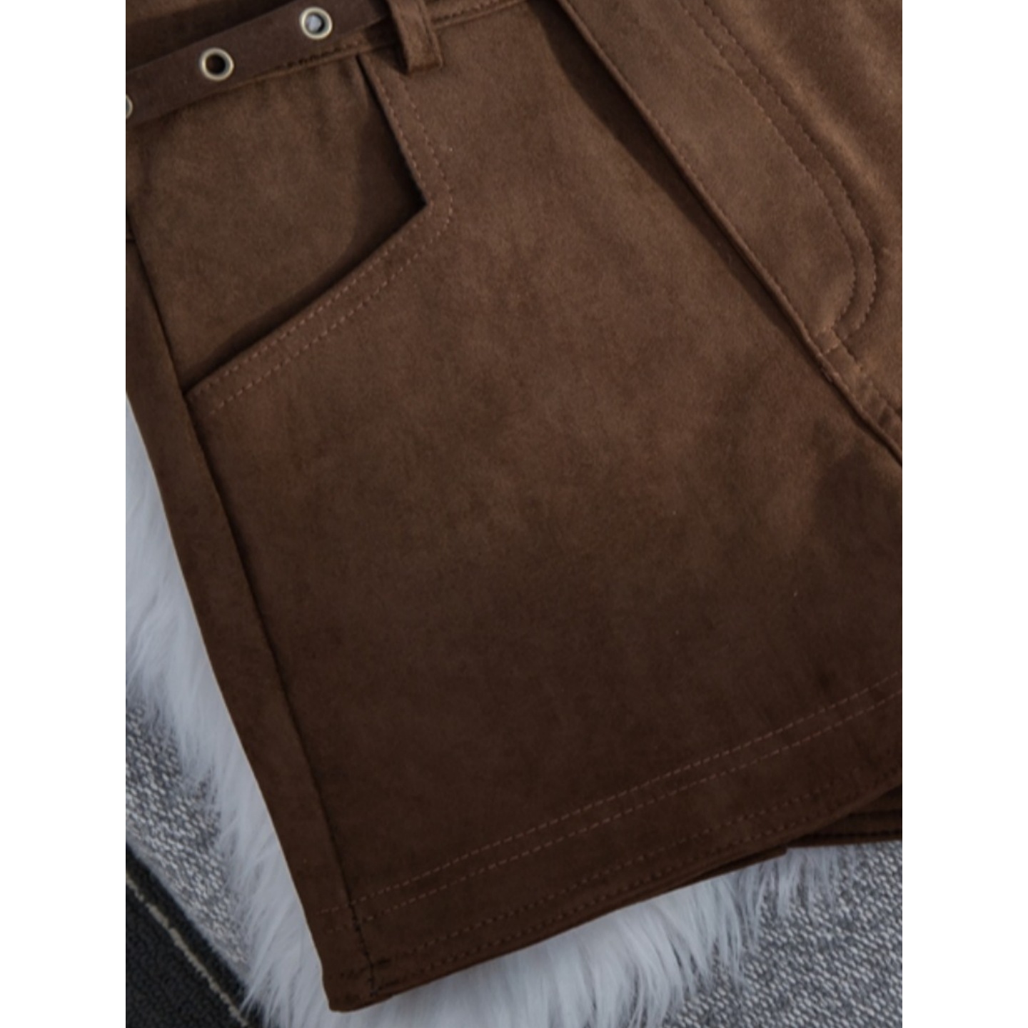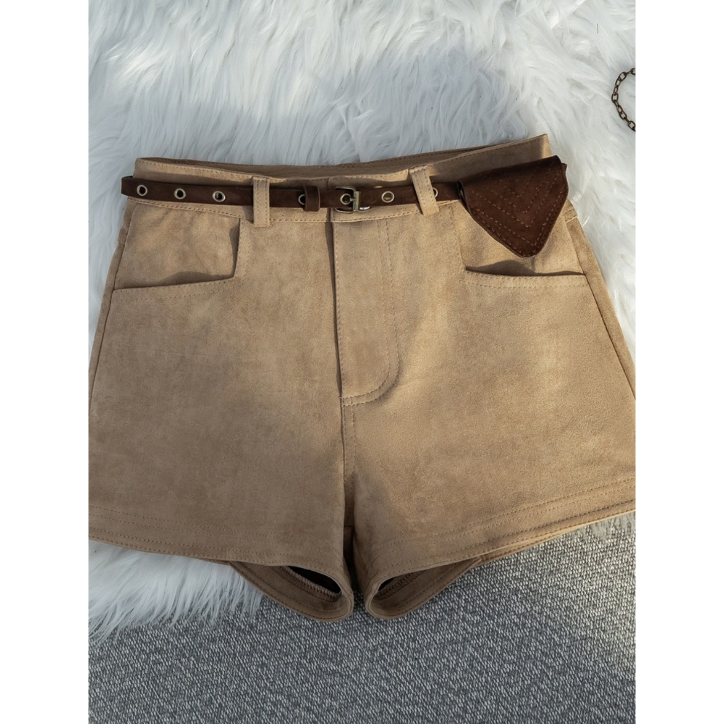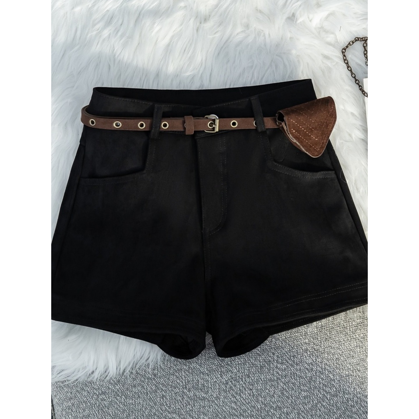 Slightly chubby mm retro coffee colored deer skin velvet shorts for women's autumn and winter outerwear A-line wide leg hot pants with boots straight leg pants
