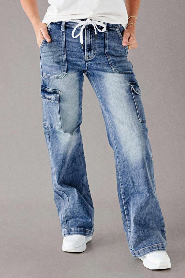 Spot European and American cross-border 2025 autumn new lace up jeans for women, loose straight casual work pants, washed with water