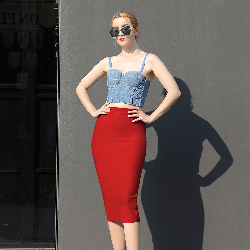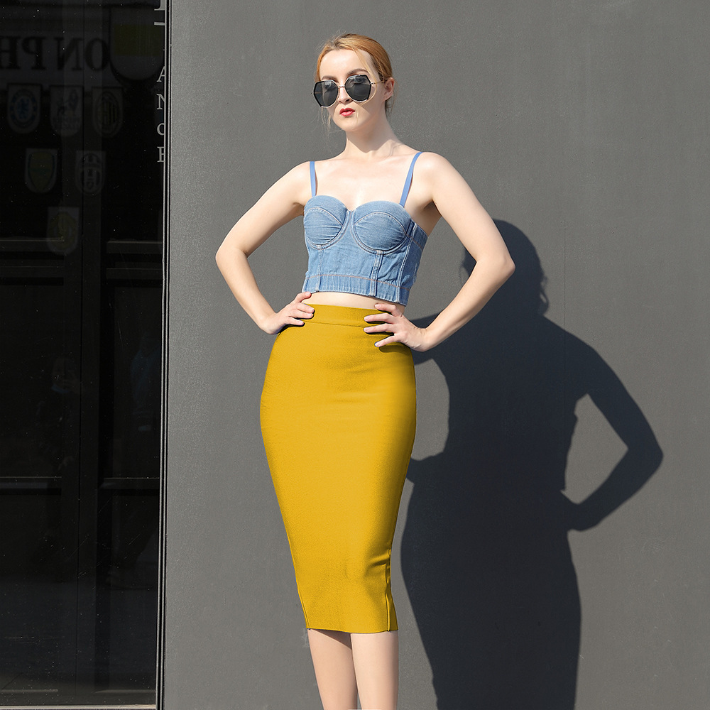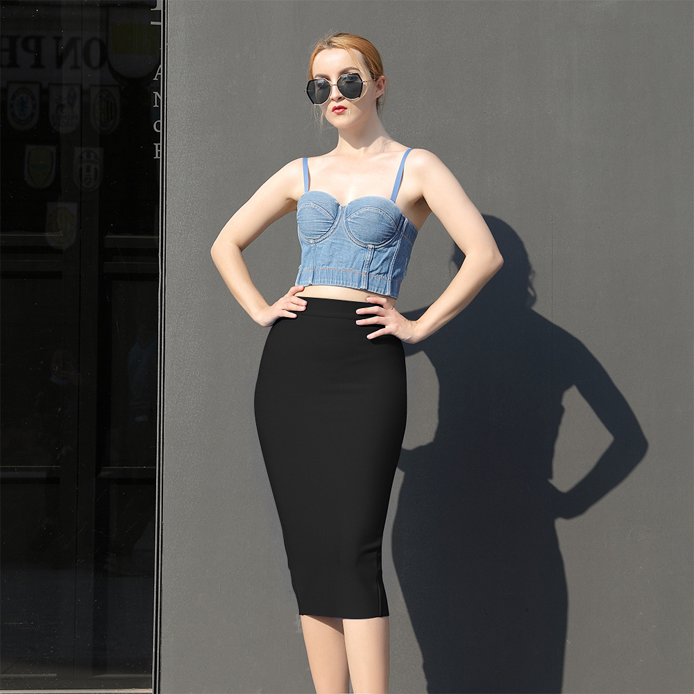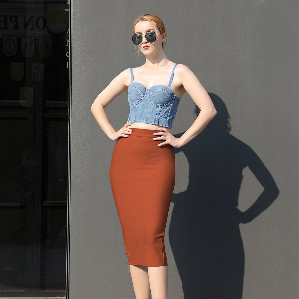 2025 autumn new slimming elastic solid color high waisted zipper skirt, tight fitting hip wrapped bandage skirt for women