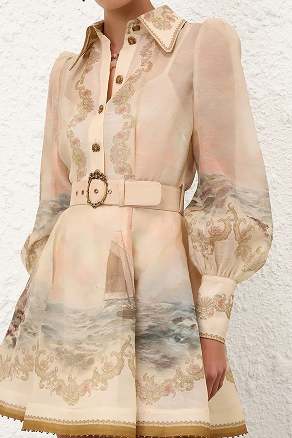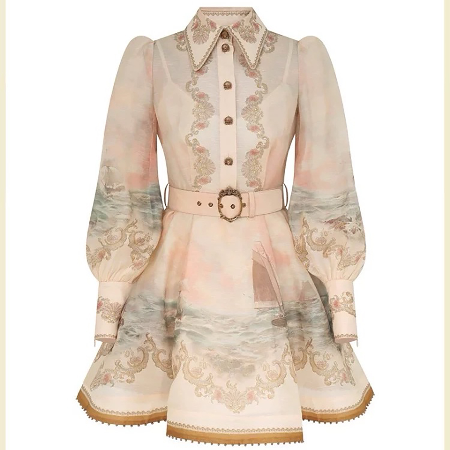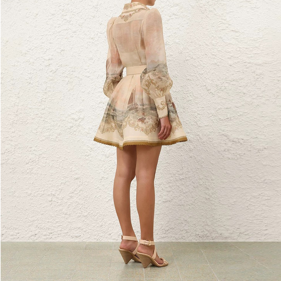 New 2026 vacation ready to wear silk linen ocean pattern mini dress