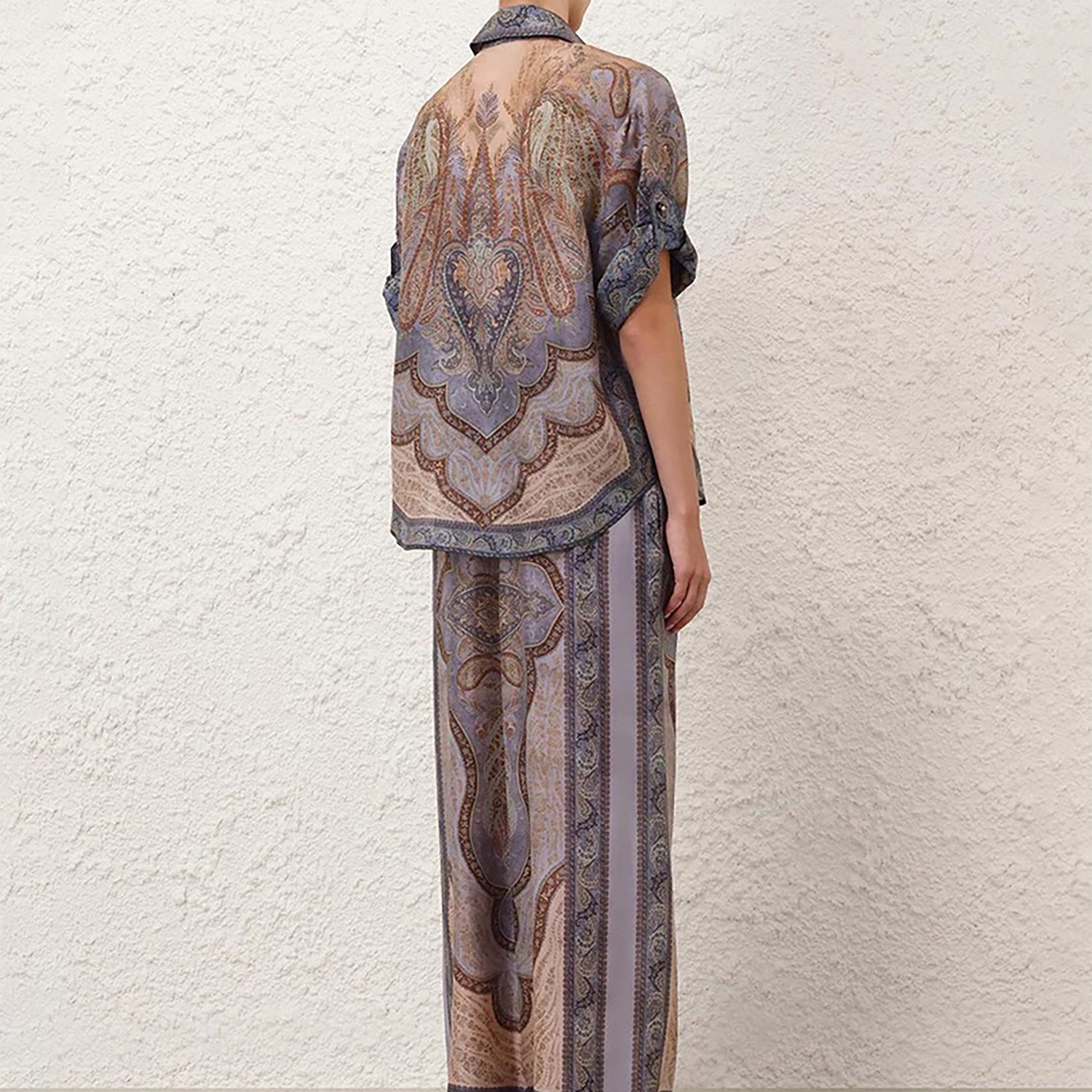 2026 vacation swimsuit new silk satin short sleeved shirt long pants set
