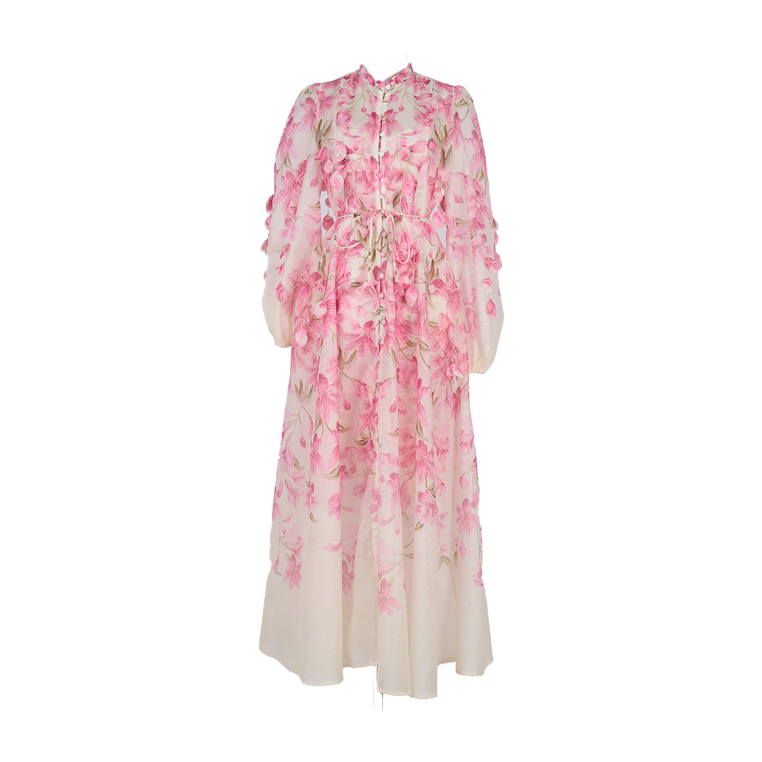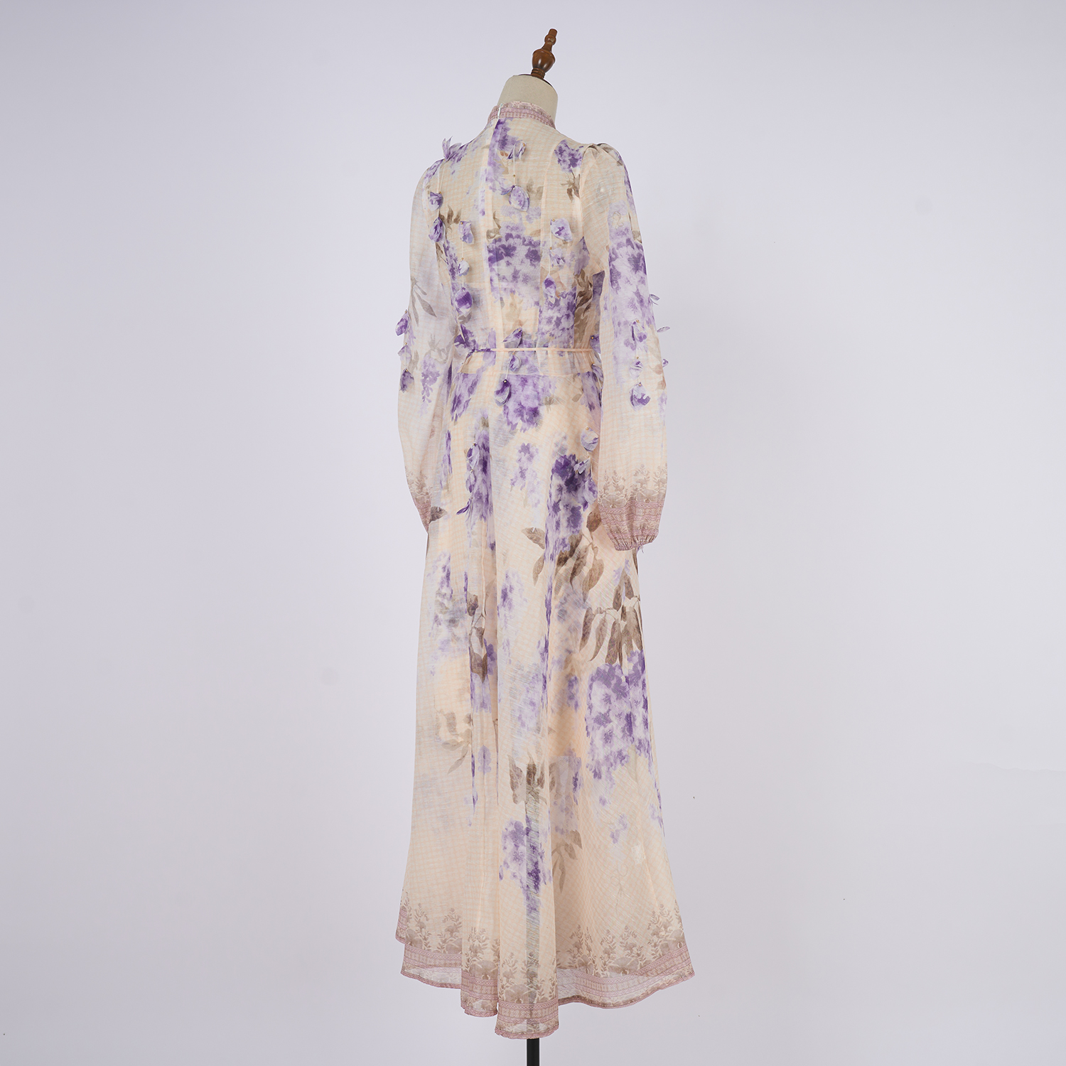 Real time shooting of new handmade hanging flower long dress with heavy craftsmanship positioning, two-piece set in 4 colors
